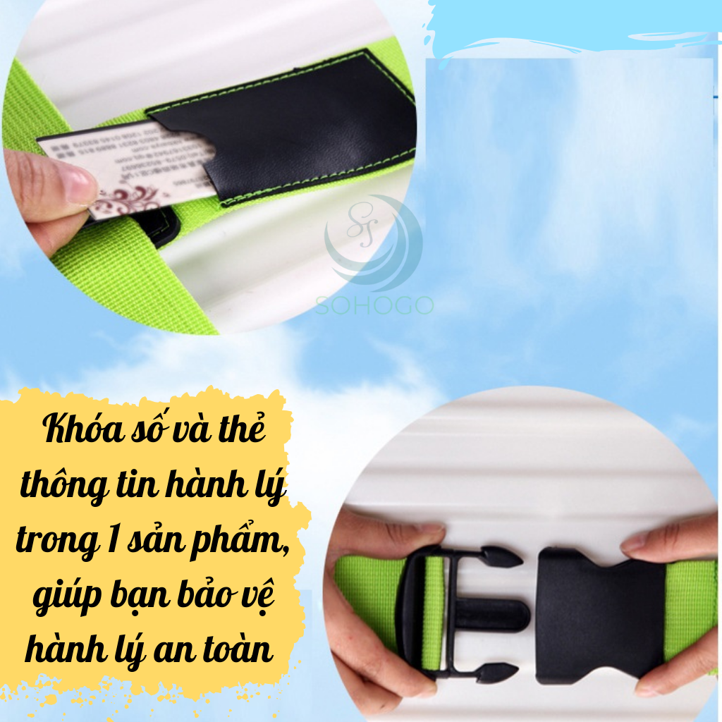 Mô tả chi tiết sản phẩm: - Chất liệu: Sợi nylon/polyester dệt cao cấp, co giãn nhẹ, chắc chắn, chống thấm nhẹ. - Kích thước: Dài điều chỉnh được, phù hợp với vali size 20
