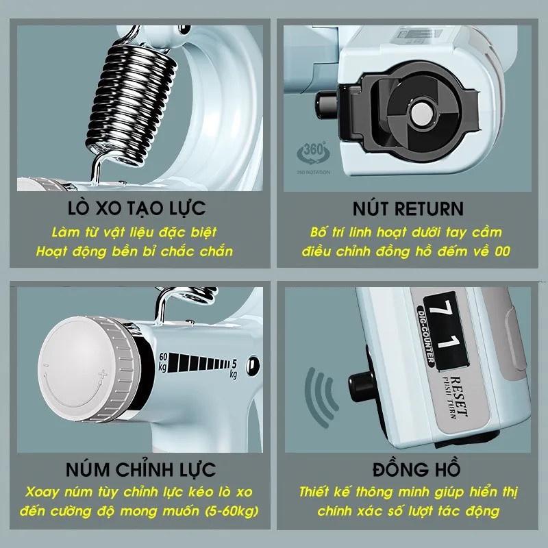 Kìm Bóp Tay Kìm Tập Cơ Tay Dụng Cụ Tập Gym Tại Nhà Điều Chỉnh Lực 5-60kg Có Đếm số tự động