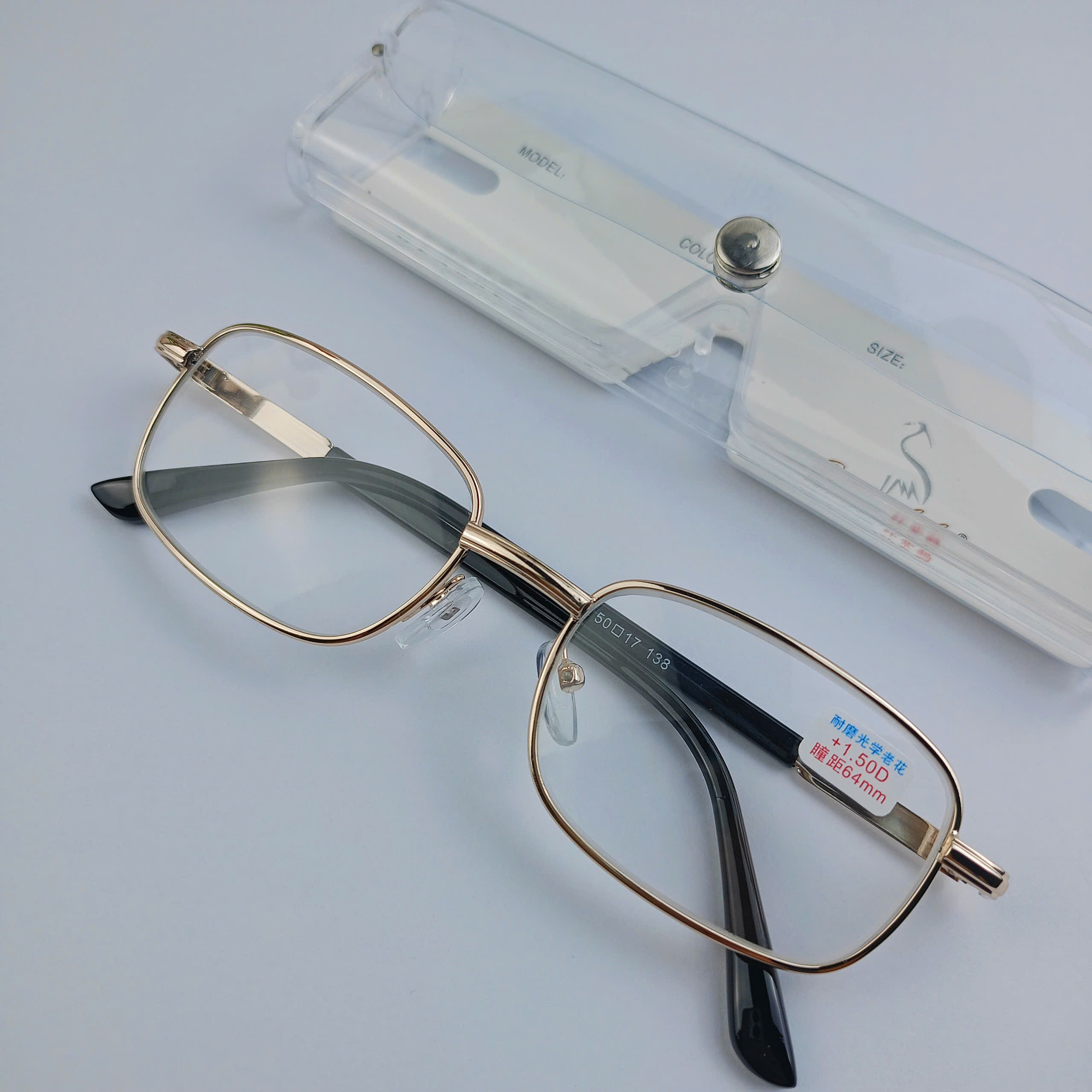 MÔ TẢ CHI TIẾT SẢN PHẨM: -tròng kính thủy tinh sản xuất tại đức - Form kính : vuông - Màu sắc: Vàng - độ từ +0.5- +4.0 - Gọng kiếng đường nét tinh xảo