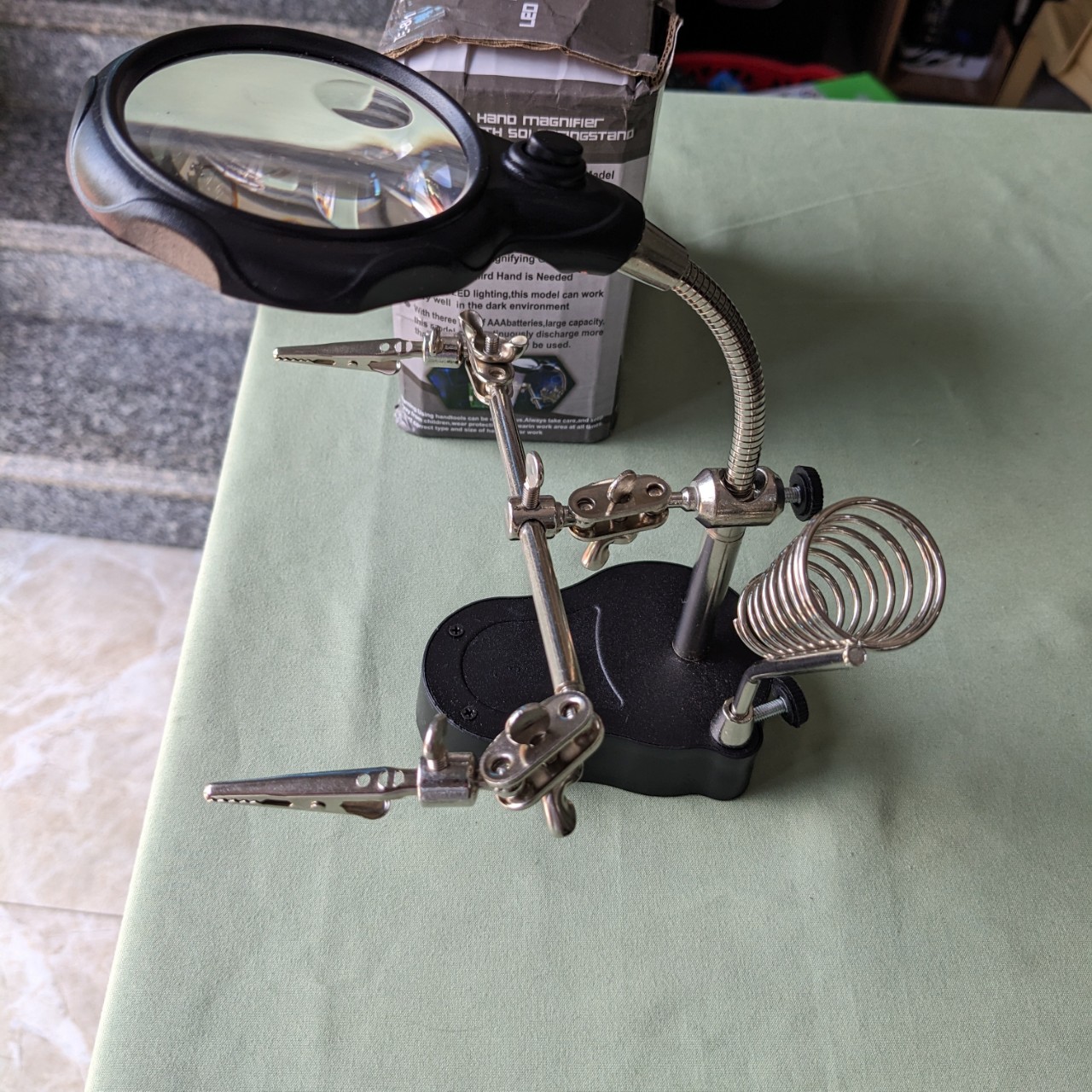 Kính lúp với độ phóng đại lớn, cho phép nhìn rõ các chi tiết nhỏ và mạch điện tử.