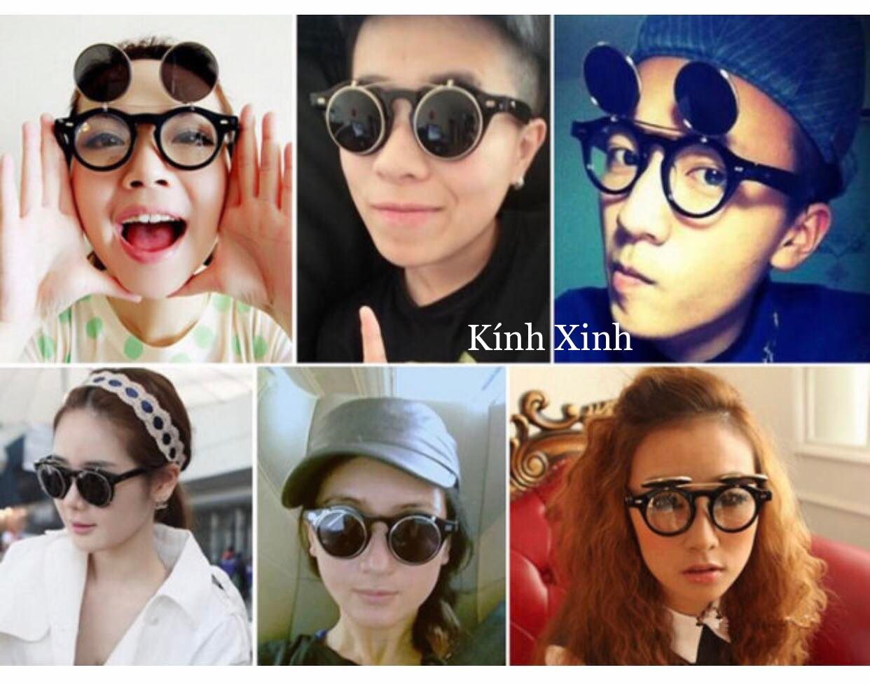 ✨Kính râm, Kính mát Nam Nữ Mắt Tròn Retro 2 Tròng Lật Gọng Nhựa Hàn Quốc Cao Cấp