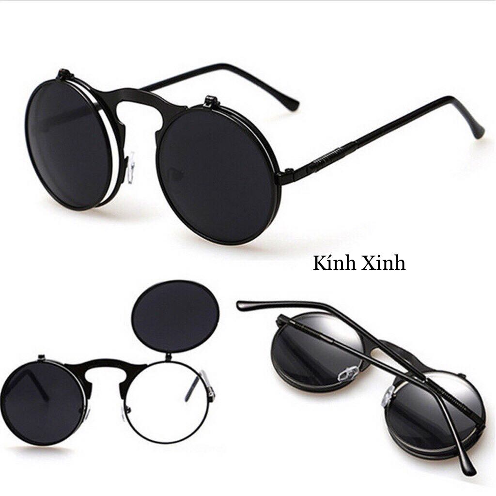 - Kính râm Mắt Tròn Nhỏ 2 Lớp Lật Nắp Gọng Lò Xo Cao Cấp - Kính mắt thiết kế đa năng tiện lợi, phù hợp đeo đi cả Ngày và Đêm để bảo vệ