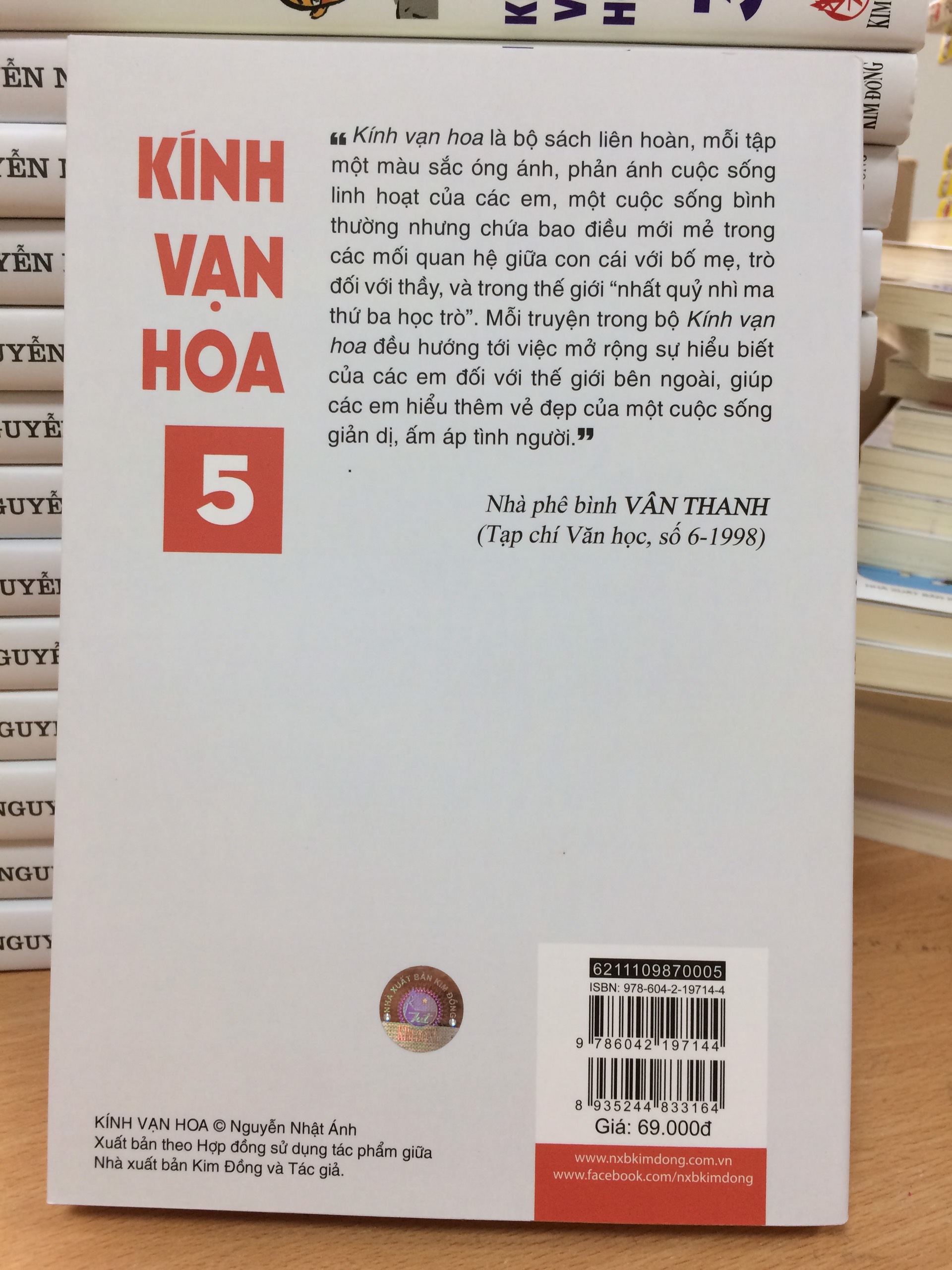"Với một giọng kể chân chất hồn hậu, khi dí dỏm khi ngọt ngào, cả tếu táo và nghịch ngợm nữa, mỗi cuốn sách của Nguyễn Nhật Ánh giống như một ống kính vạn hoa. Với các em, chỉ cần xoay khẽ một chút các em sẽ thấy biết bao quen thân và lạ lẫm để rồi ngồi cười khúc khích với nhau, hoặc lặng đi, nhìn nhau rưng rưng tiếc thương một cái gì đã mất.