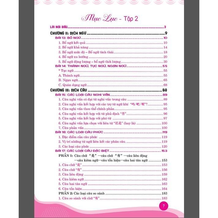 CHƯƠNG I đến CHƯƠNG V được biên soạn có độ khó tăng dần, lần lượt phát triển theo thứ tự; (a) dịch từ; (b) dịch cụm từ; (c) dịch câu ngắn; (d) dịch câu dài; (e) dịch đoạn; (f) dịch bài thông qua các chủ đề phong phú, các lĩnh vực thường gặp trong môi trường công việc thực tế như: ngoại giao, du lịch, đời sống, thương mại, pháp luật, giáo dụ Ngoài phần lý thuyết được trình bày một cách ngắn gọn, khoa học và hệ thống, các kiến thức chính đều có phần đối chiếu vị trí, cách dịch của hai ngôn ngữ, qua đó, giúp người học có thể dễ dàng hiểu, nhớ và vận dụng các kiến thức ngay sau khi học. Cuốn sách Kỹ Năng Biên Phiên Dịch Trung – Việt, Việt – Trung thực chiến có thể hỗ trợ một cách hiệu quả nhất cho người học nhờ những ưu điểm nổi bật sau: