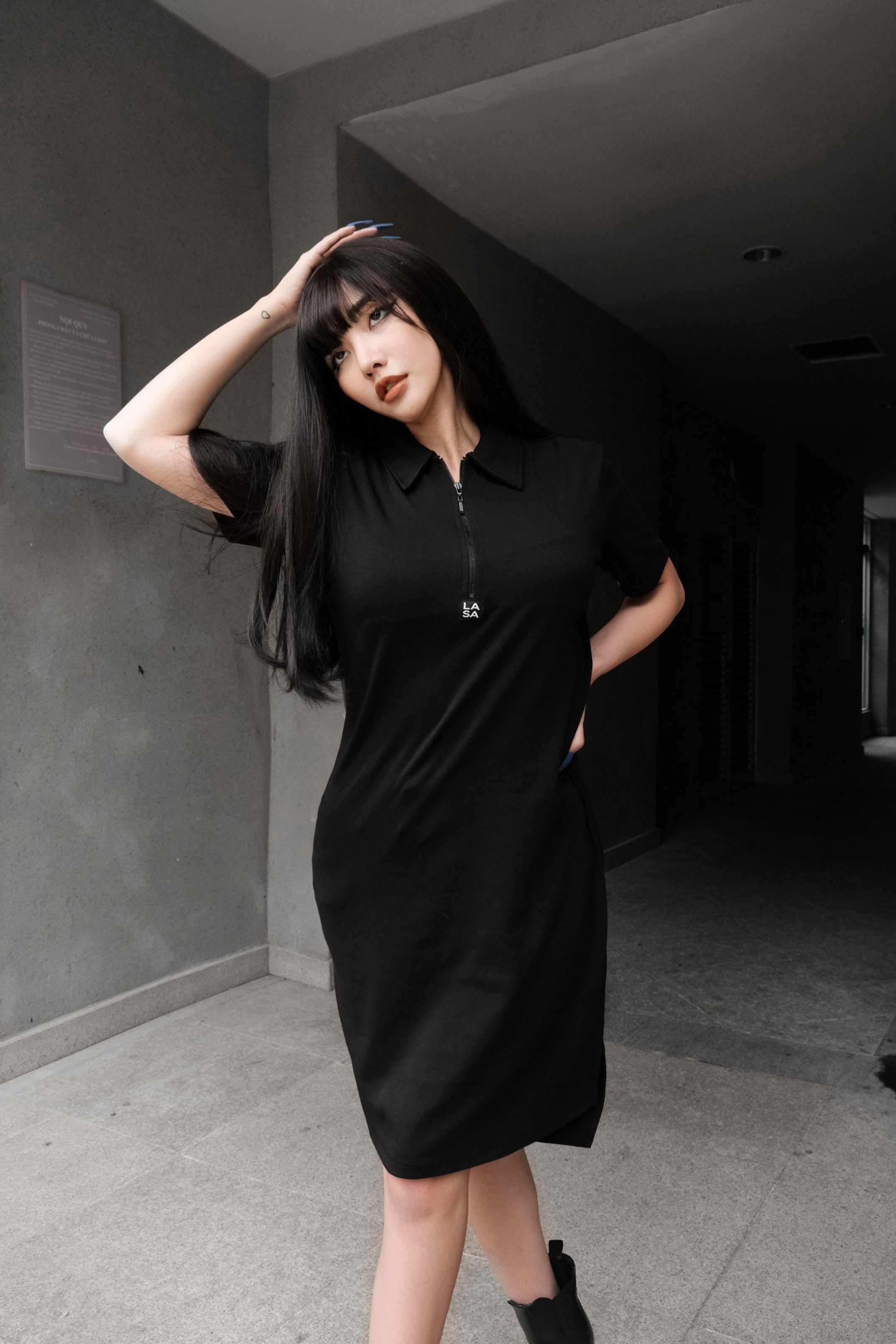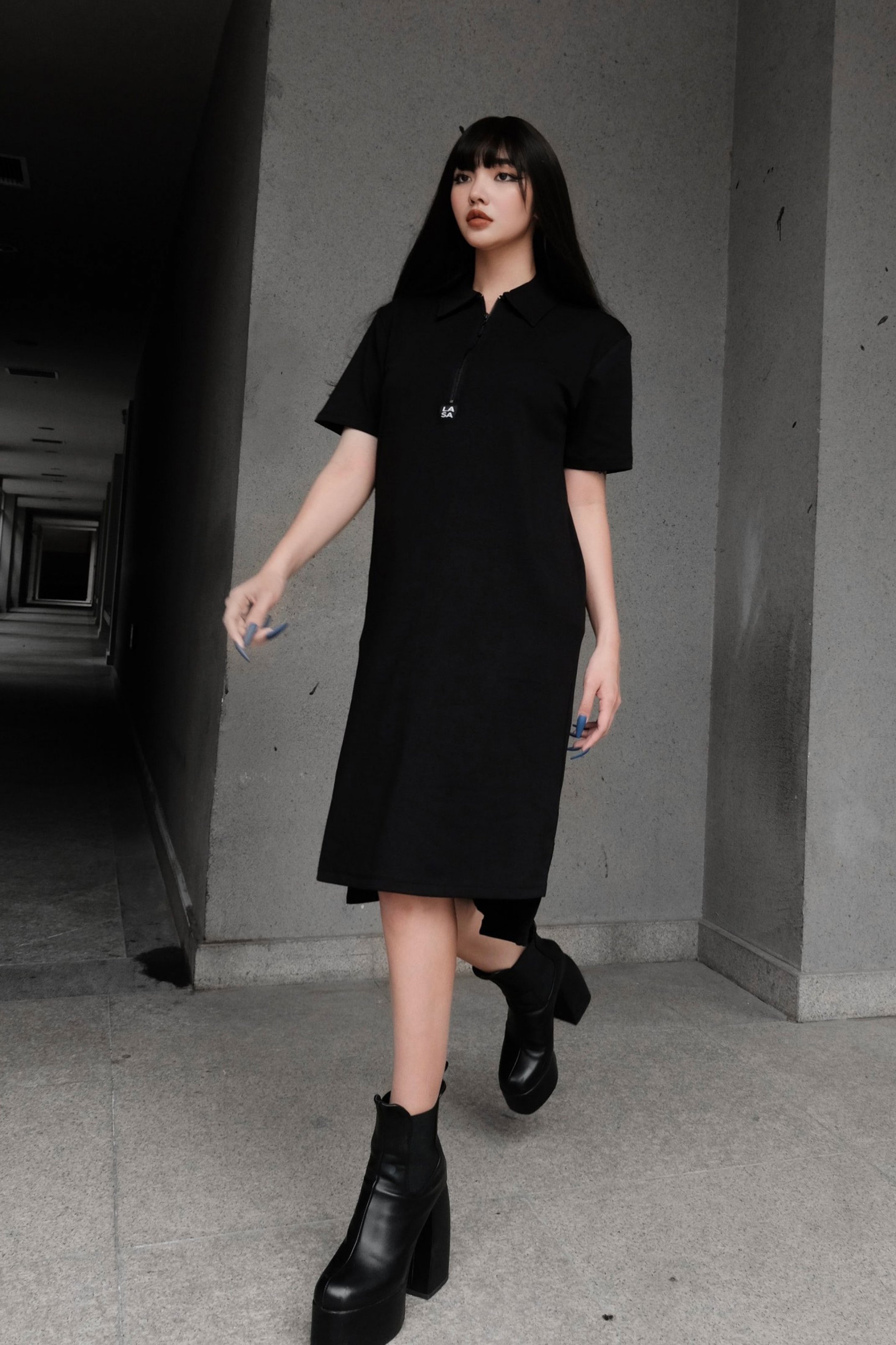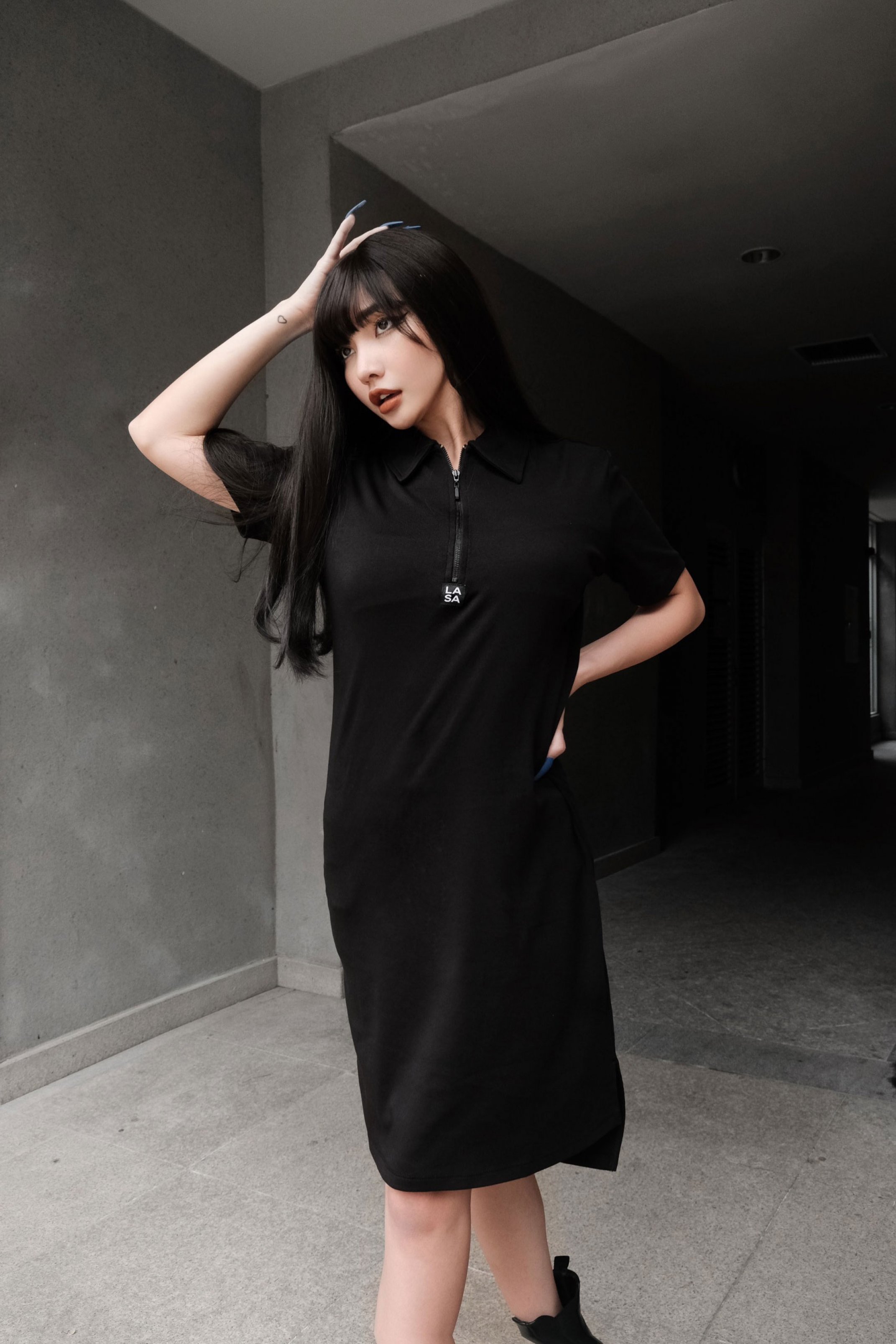 Mua tại TiktokBORIP COTTON 100% 4 CHIỀU, CHẤT DÀY MỀM, THOÁNG MÁT ĐẦM MÀU ĐEN, CỔ POLO DÂY KÉO SẮT YKK FORM SUÔN, TAY NGẮN, DÀI TRÊN GỐI ĐIỂM NHẤN TAG LOGO LAAS NGAY PHẦN DÂY KÉO