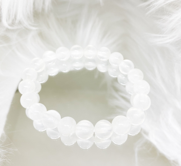 V109-8 Vòng nữ đá ánh trăng - Moonstone nhân tạo size 8 ly - màu trắng