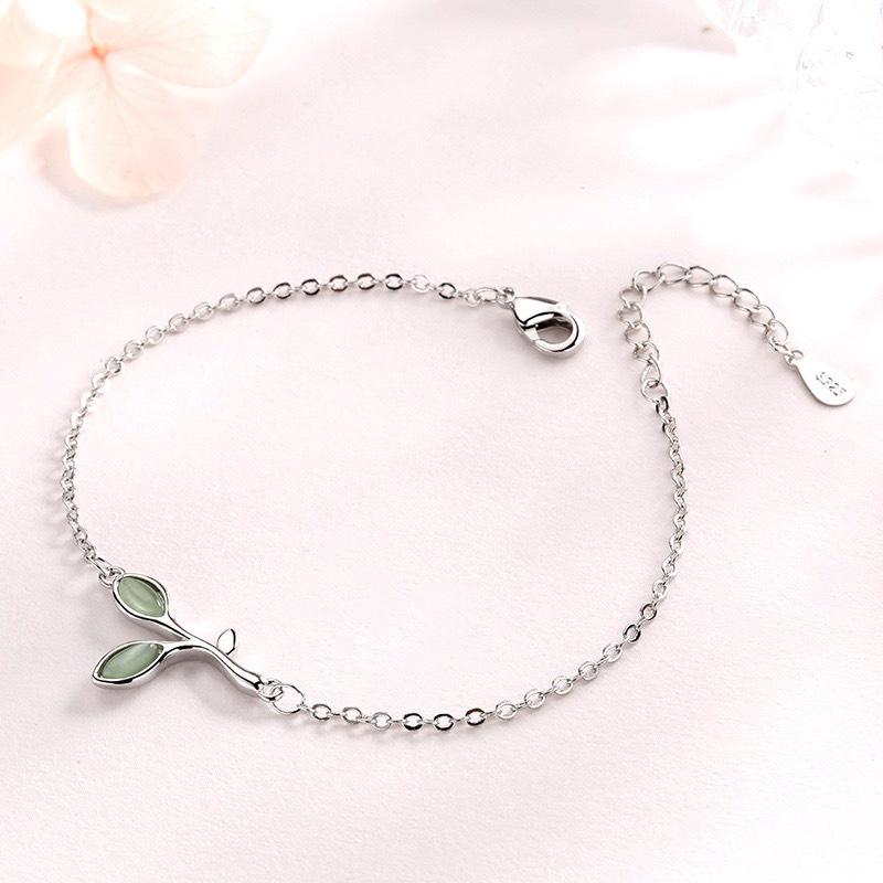 Lắc tay bạc Tiny Clove với thiết kế đặc biệt 2 lá gắn đá xanh tạo điểm nhấn đột phá. Lắc tay mang phong cách Hàn Quốc thời trang, nữ tính nhưng thực sự là mẫu dành cho những cô nàng trendy.