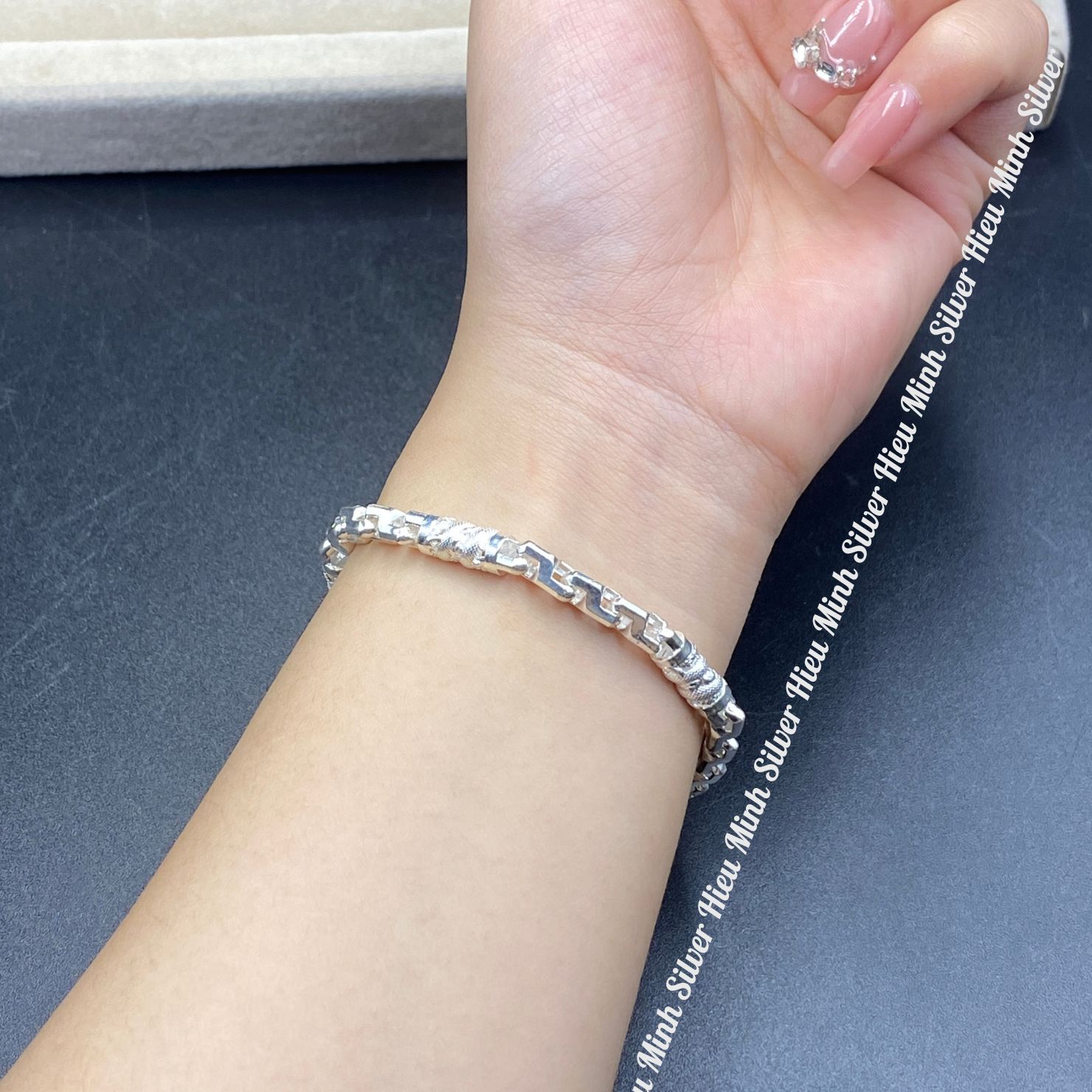 ️ Chất liệu bạc ta không xi mạ. Size từ 50kg - 65kg .Khách chat với shop để đo cổ tay chọn size phù hợp nhé. Chiều dài chuẩn 18cm - 19cm. Trọng lượng 7.6 chỉ - 7.8 chỉ