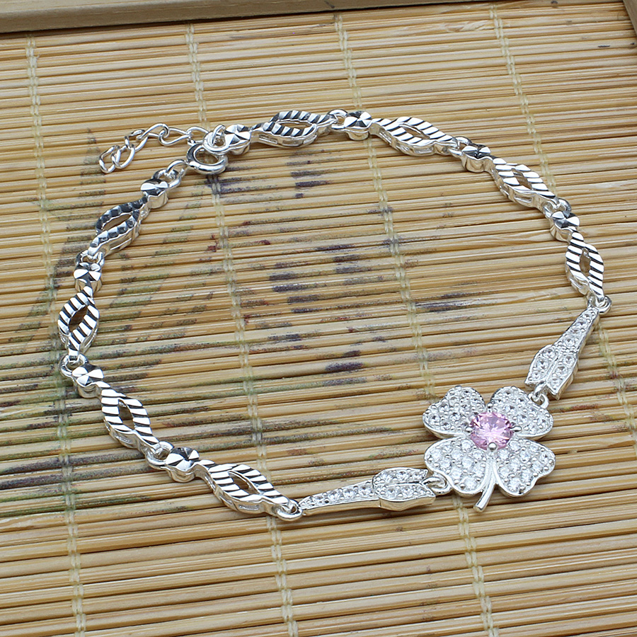 Lắc Tay Bạc Nữ Bạc Hiểu Minh Ltu329 Cỏ 4 Lá