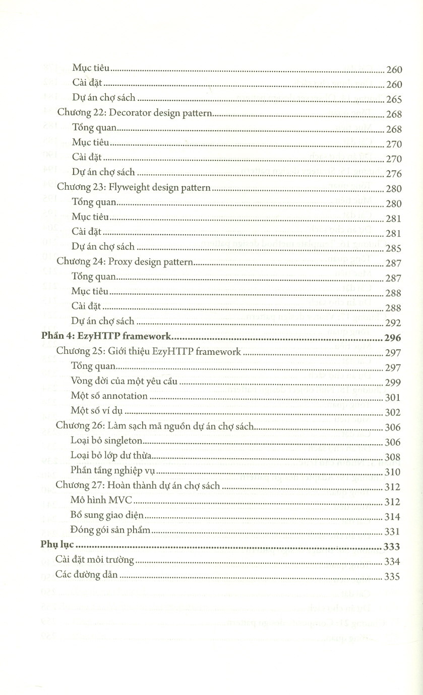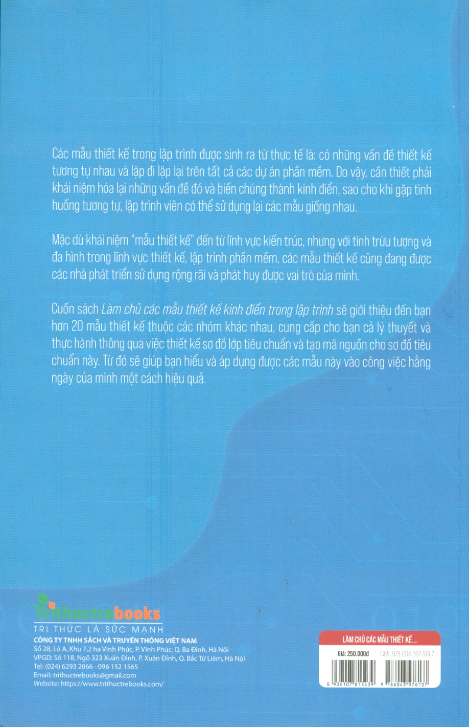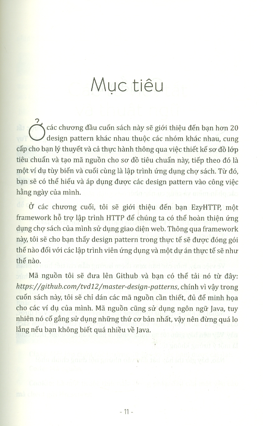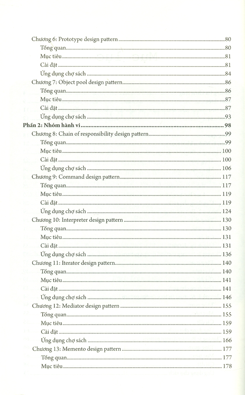 Cuốn sách Làm chủ các mẫu thiết kế kinh điển trong lập trình sẽ giới thiệu đến bạn hơn 20 mẫu thiết kế thuộc các nhóm khác nhau, cung cấp cho bạn cả lý thuyết và thực hành thông qua việc thiết kế sơ đồ lớp tiêu chuẩn và tạo mã nguồn cho sơ đồ tiêu chuẩn này. Qua ví dụ cụ thể, trực quan trong sách, các bạn sẽ hiểu được các mẫu thiết kế lập trình trong thực tế sẽ được đóng gói như thế nào, cũng như một dự án thực tế thì trông ra sao.