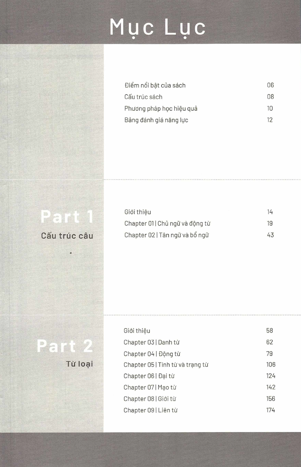 • Cuốn sách cung cấp các chủ điểm ngữ pháp và các dạng câu hỏi thường gặp trong bài thi TOEFL ITP. Người học sẽ được học những kiến thức cơ bản như phân tích thành phần cấu tạo câu, trật tự của các từ trong câu, từ loại, cho đến những kiến thức nâng cao hơn về các thì, mệnh đề, và cách sử dụng để từ đó có thể phân tích câu hỏi và nhanh chóng tìm ra đáp án.
