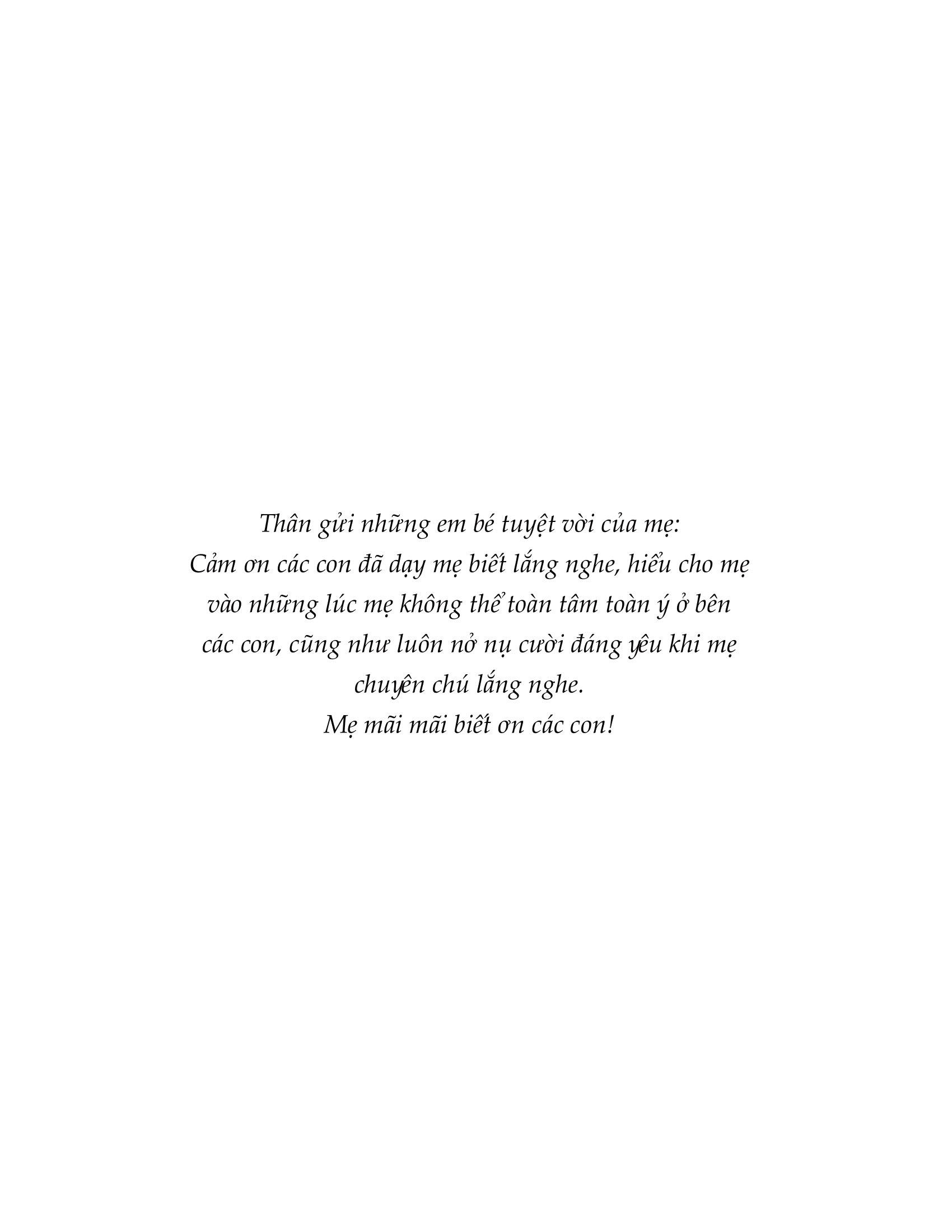 Khi học cách lắng nghe hiệu quả, bạn sẽ khám phá ra cách xây dựng các mối quan hệ bền chặt hơn tại nơi làm việc, mở ra thêm nhiều cánh cửa dành cho m.ình, cũng như thăng tiến trong sự nghiệp và cảm thấy mãn nguyện hơn trong công việc. Các tổ chức áp dụng những bài học có trong cuốn sách này có thể đạt được nhiều kết quả tích cực hơn vì những người giữ vai trò quan trọng - chẳng hạn như nhân viên và khách hàng - sẽ bắt đầu cảm thấy được lắng nghe, được trân trọng và được hỗ trợ. Điều này khiến họ quý mến tổ chức của bạn và muốn gắn bó với bạn trong thời gian dài hơn, theo những cách to lớn hơn cũng như hiệu quả hơn.