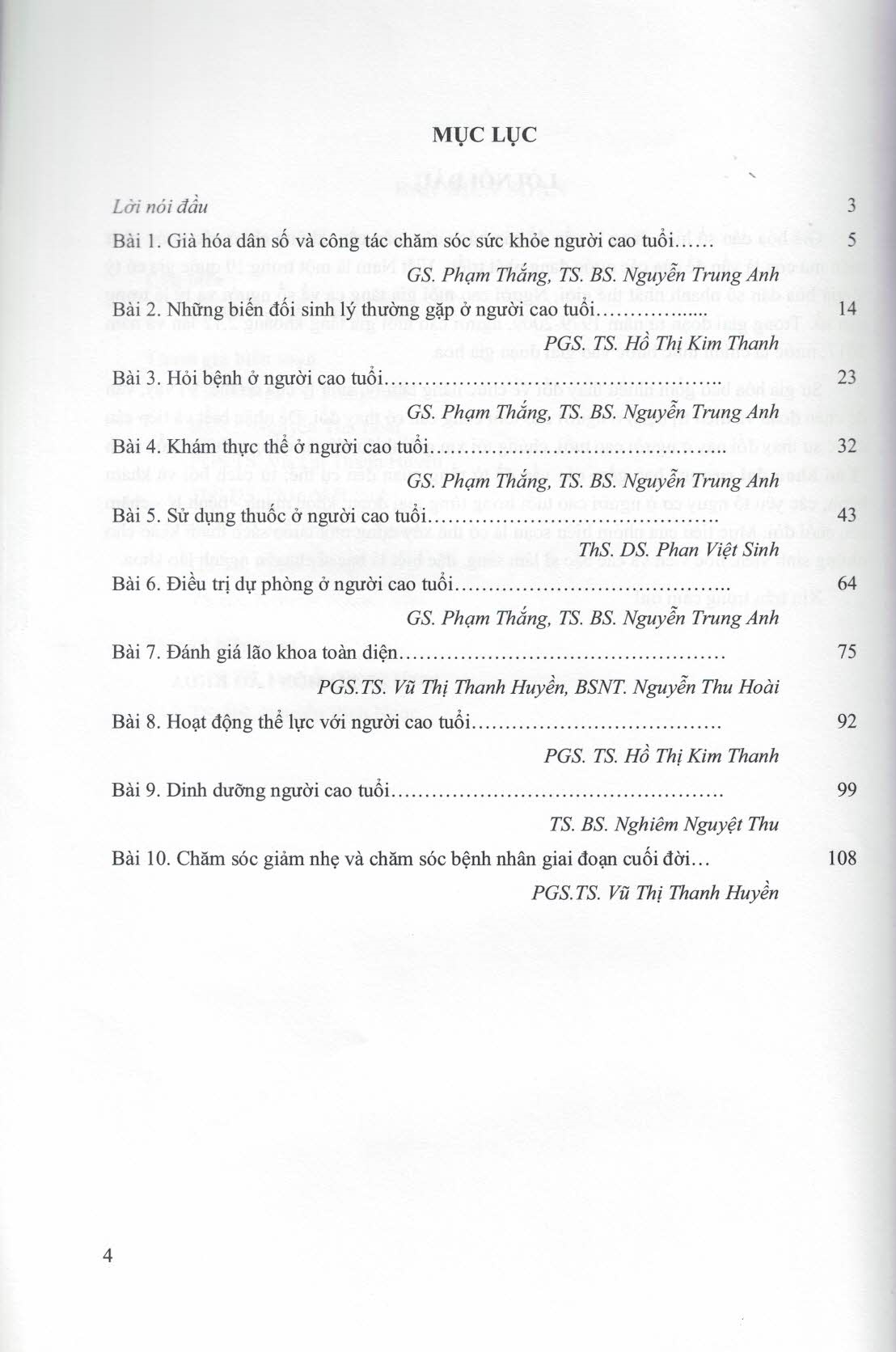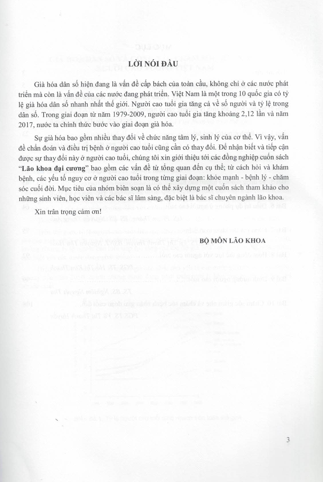 Già hóa dân số đang là vấn đề cấp bách mang tính toàn cầu. Việt Nam là một trong mười quốc gia có tỷ lệ già hóa dân số nhanh nhất thế giới. Sự già hóa dẫn đến nhiều thay đổi về chức năng tâm lý, sinh lý của cơ thể. Vì vậy, vấn đề chẩn đoán và điều trị bệnh ở người cao tuổi cũng cần có sự thay đổi. Cuốn sách bao gồm các vấn đề từ tổng quan đến cụ thể, là tài liệu hữu ích cho sinh viên, học viên và các bác sĩ lâm sàng, đặc biệt là các bác sĩ chuyên ngành lão khoa.