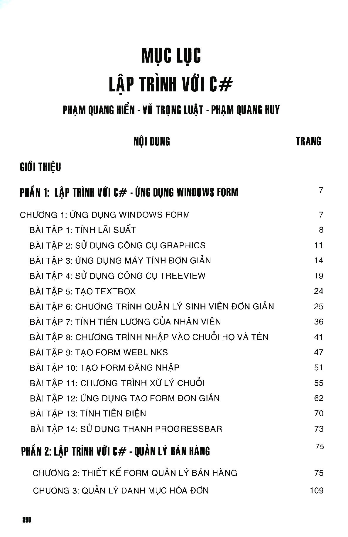 Lập Trình Với C# GIỚI THIỆU SÁCH: Sách Lập Trình Với C# hướng dẫn người học từng bước lập trình C#. Xây dựng ứng dụng trên Window Form. Xây dựng ứng dụng, tạo hai trang