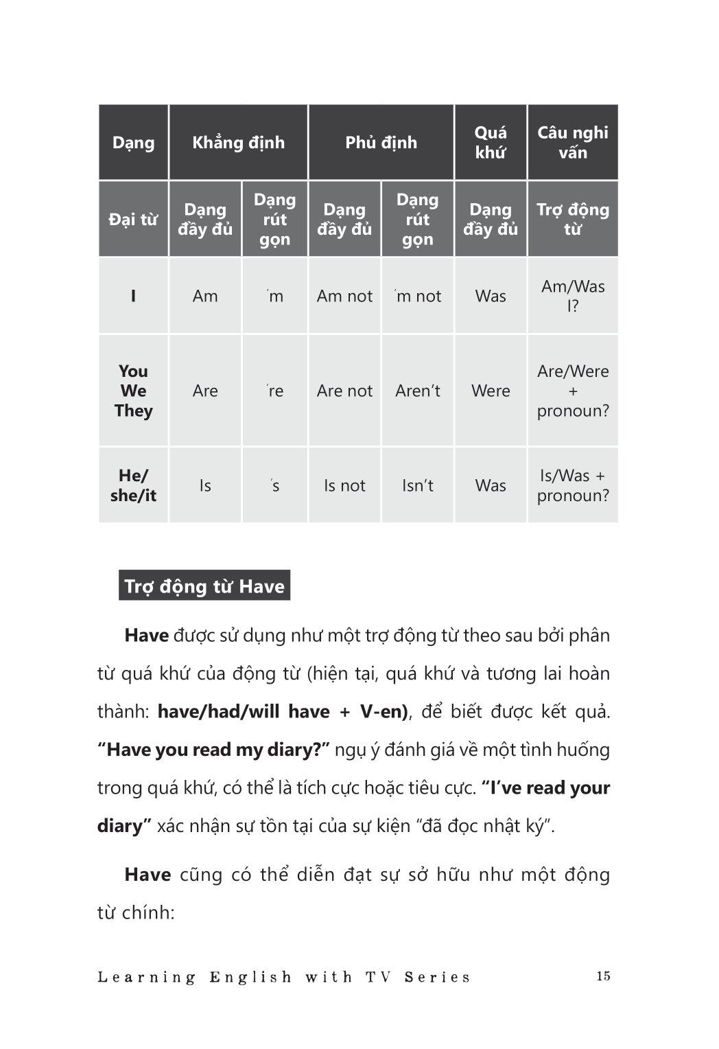 Mua tại TiktokLearning English With Tv Series - Luyện Nói Thành Thạo Cùng “Mọt” Phim Tiếng Anh Nếu đã vùi đầu học thuộc mớ ngữ pháp tiếng Anh nhưng đến lúc cần dùng lại quên sạch thì sao bạn không thử Learning English with TV Series? Bạn chỉ cần chuẩn bị sổ bút, bật TV lên và để cuốn sách này giúp bạn hệ thống hóa mọi kiến thức cần thiết. 9 bộ phim tương ứng với 9 chủ đề thông dụng luôn sẵn sàng để bạn thực hành giao tiếp dễ dàng trong mọi tình huống ngoài đời thực, chẳng hạn như: