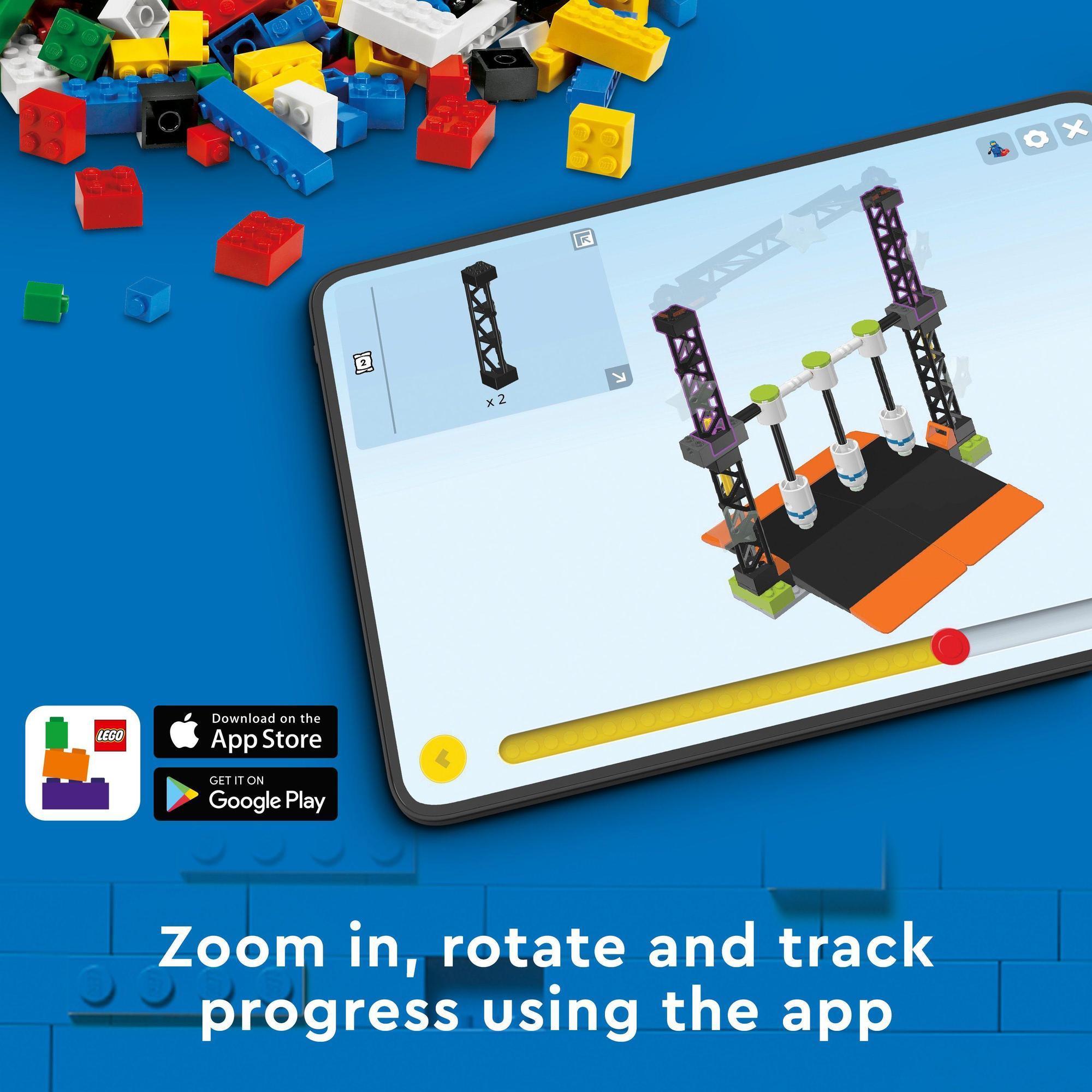 Zoom in, rotate and track progress in the LEGO Builder app.