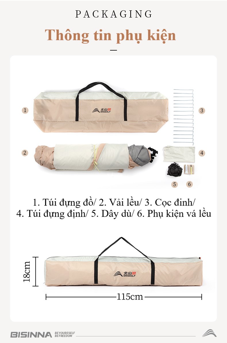 Giới Thiệu Về Sản Phẩm: - Vải lều chống nước cực tốt giúp bạn không bị ướt bởi cơn mưa, sương mù và bảo vệ bạn khỏi côn trùng cắn. Khung lều làm từ sợi