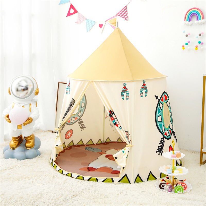 Lều vải màu ghi hồng cho bé gái | Lều vải thổ dân | ThienY Teepee tent
