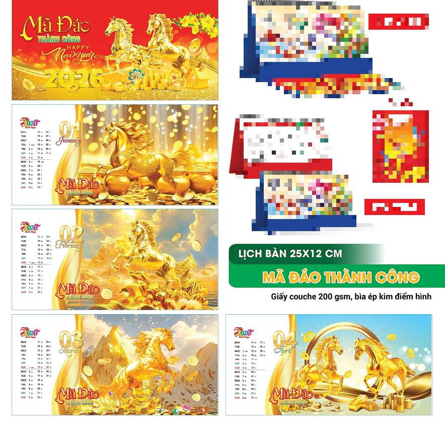 Lịch Để Bàn 2026 Đế Chữ A ,Bìa Ép Kim Điển Hình Cao Cấp, Sang Trọng: -Có nhiều mẫu cho bạn lựa chọn -Kích thước tờ lịch: dạng đứng 17*19cm, dạng ngang 12*25cm -Thiết kế đế chữ A tiện dụng, nhiều mẫu mã, -Làm từ giấy Coucher định lượng 200gsm dầy dặn *LƯU Ý: Sản phẩm không bao gồm túi giấy