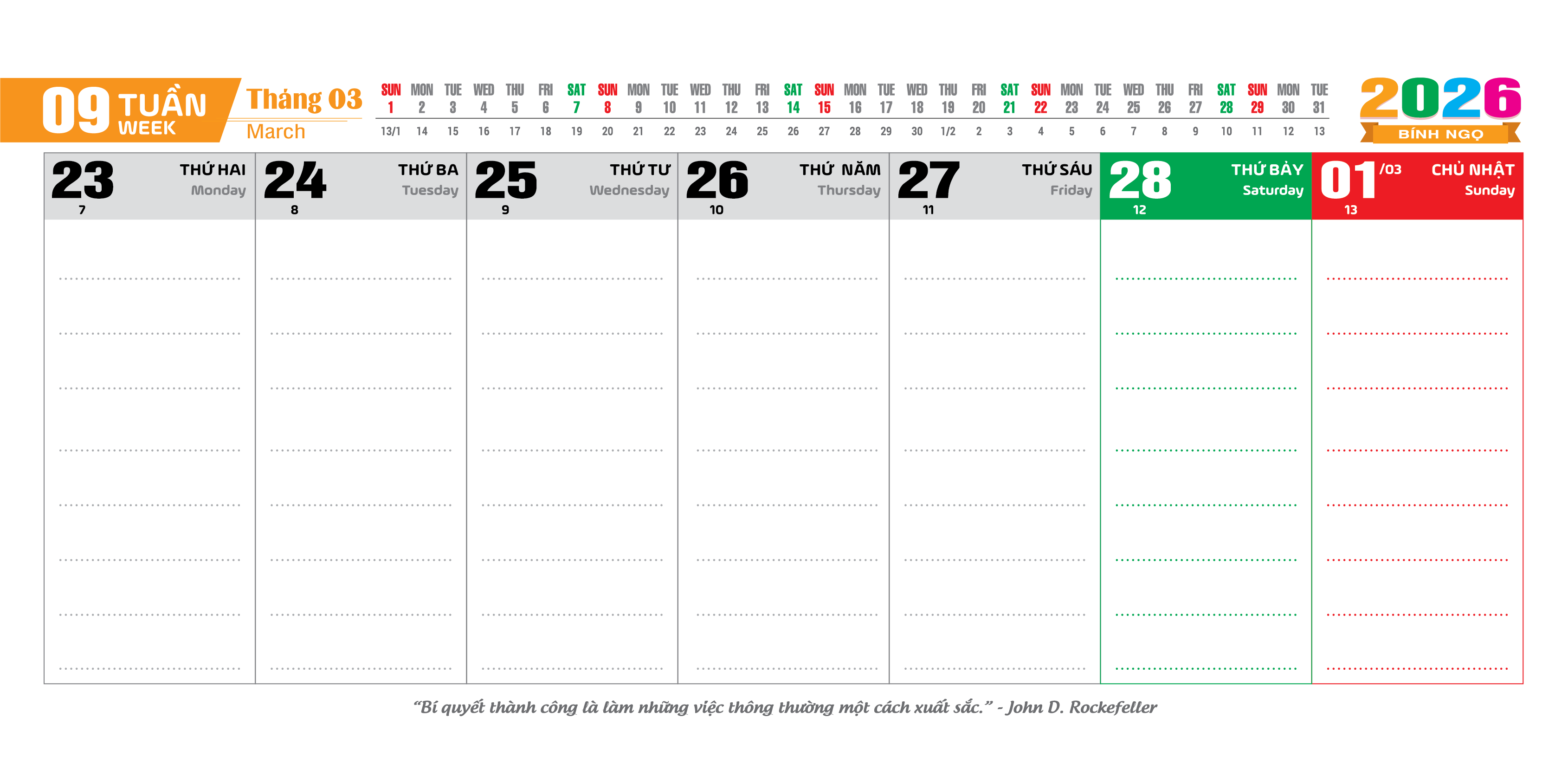 Lịch âm dương tháng 2 năm 2026 - Lịch vạn niên tháng 2/2026, Tết Bính Ngọ