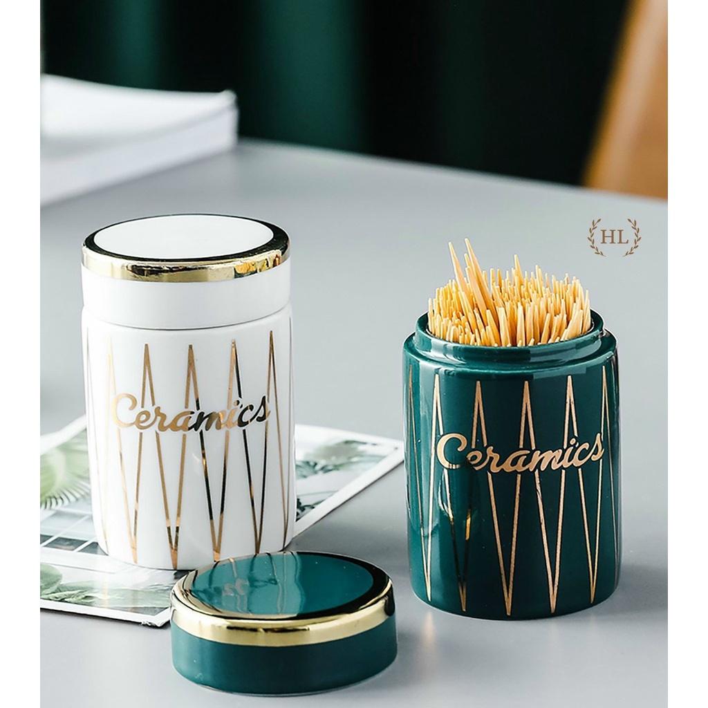 Hũ tăm bằng sứ cao cấp Màu sắc sang trọng Ngoài công dụng chính còn là phụ kiện trang trí trên bàn ăn
