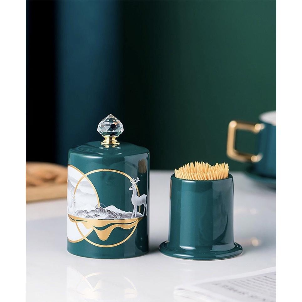 Hũ tăm bằng sứ cao cấp Màu sắc sang trọng Ngoài công dụng chính còn là phụ kiện trang trí trên bàn ăn