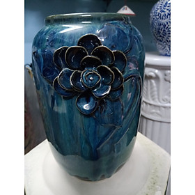 Bình hút tài lộc đắp nổi hoa sen men hoả biến bát tràng 📞 0923768809