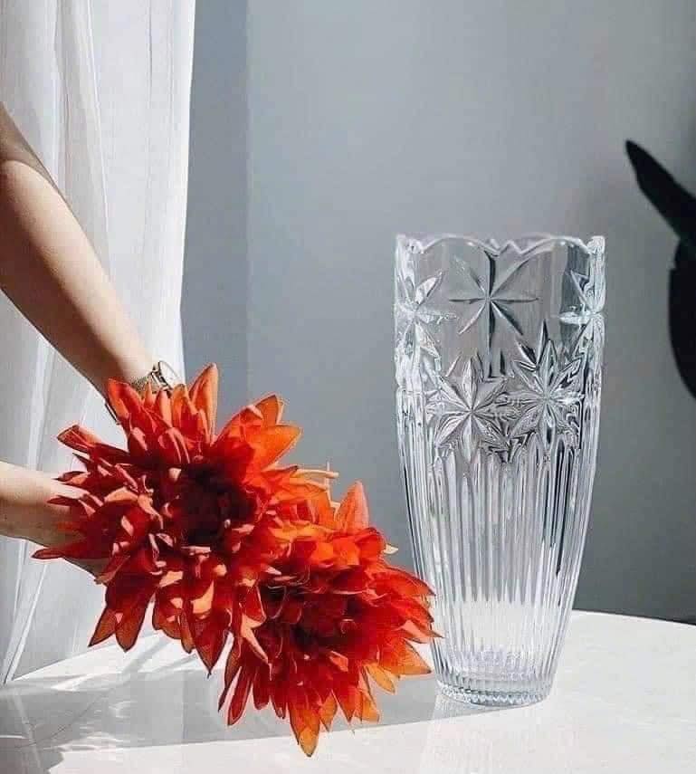 THÔNG TIN SẢN PHẨM Chiều cao 30cm Chất liệu: Thủy tinh Bề mặt lọ hoa được đánh bóng, mang lại vẻ đẹp và sự tinh tế. Lọ hoa được làm từ chất liệu thủy tinh