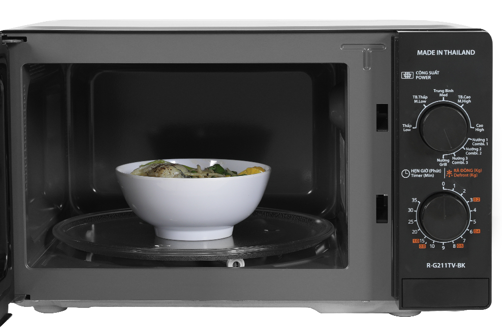 • Không sử dụng lò vi sóng có cửa bị hỏng hoặc đóng không khít. Lò vi sóng có nướng Sharp R-G211TV-BK 21 lít với dung tích vừa phải, phù hợp với những gia đình ít thành viên. Lò giúp rã đông, hâm, nấu, nướng thực phẩm nhanh chóng với công suất được chia thành nhiều mức phù hợp với từng nhu cầu sử dụng, là sản phẩm đến từ thương hiệu uy tín, được sản xuất tại Thái Lan, đảm bảo đem đến nhiều trải nghiệm nấu nướng.