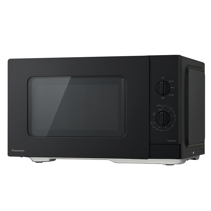 Lò vi sóng Panasonic NN-SM33NBYUE thiết bị hữu ích cho gian bếp hiện đại Chất liệu cao cấp, kiểu dáng hiện đại Panasonic NN-SM33NBYUE là dòng lò vi sóng của thương hiệu Panasonic Nhật Bản. Sản phẩm được làm bằng chất liệu thép không gỉ có độ bền cao. Lò vi sóng Panasonic có kiểu dáng nhỏ gọn với kích thước 28 x 46.9 x 38 cm (Cao x Rộng x Sâu), trọng lượng 12kg. Thiết kế kiểu mở cửa dạng nút nhấn mở cho phép mở cửa lò dễ dàng.  Lò vi sóng Panasonic NN-SM33NBYUE được làm bằng chất liệu cao cấp Lò có dung tích 25 lít Sản phẩm có dung tích sử dụng lên đến 25 lít có thể chứa được nhiều thực phẩm khi cho vào hâm nóng trong 1 lần sử dụng. Nhờ đó người dùng cũng đỡ phải mất thời gian chờ đợi để hâm từng món.  Dung tích lò vi sóng Panasonic NN-SM33NBYUE là 25 lít Công suất 900W giúp làm chín thức ăn nhanh Dòng lò vi sóng này của Panasonic đem đến chức năng chính là nấu, hâm, rã đông theo trọng lượng. Sản phẩm hoạt động với công suất lên đến 900W, cùng với đó là 5 cấp độ công suất gồm: cao 900W, cao trung bình 700W, trung bình 400W, rã đông 300W, thấp 200W. Người dùng dễ dàng lựa chọn các mức công suất tùy vào từng loại thực phẩm cần chế biến.  Panasonic NN-SM33NBYUE hoạt động với công suất 900W Tính năng hẹn giờ lên đến 35 phút Panasonic đã tích hợp cho dòng lò vi sóng NN-SM33NBYUE của hãng tính năng hẹn giờ lên đến 35 phút. Vì thế việc kiểm soát thời gian chế biến món ăn đơn giản và thuận tiện hơn.   Lò vi sóng Panasonic NN-SM33NBYUE hẹn giờ được đến 35 phút