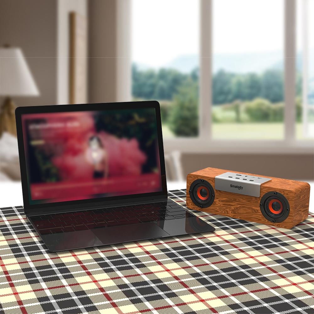 Adopting wooden material, SMALODY SL-90H wooden BT speaker is elegant and fashionable. It uses advanced BT 5.0 technology, effectively lower energy consumption and provides stable transmission. With 4*5W loudspeakers of 64mm large diameter, it can