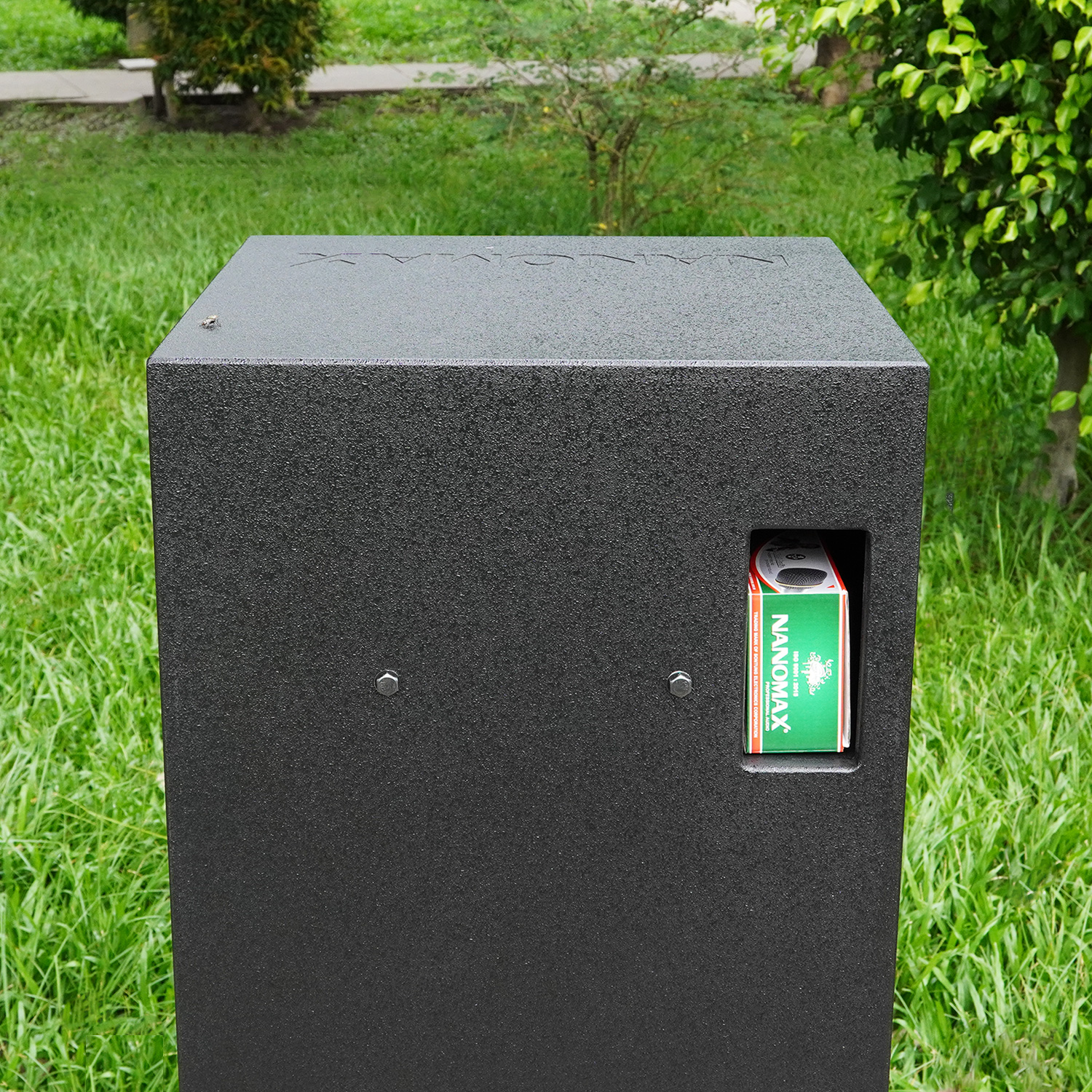 Loa karaoke điện Nanomax PRO-218G được chế tác với đường nét gọn gàng, hình dạng tối giản, sang trọng với gam màu đen phối xám sang trọng, thùng loa bằng chất liệu gỗ sơn chống