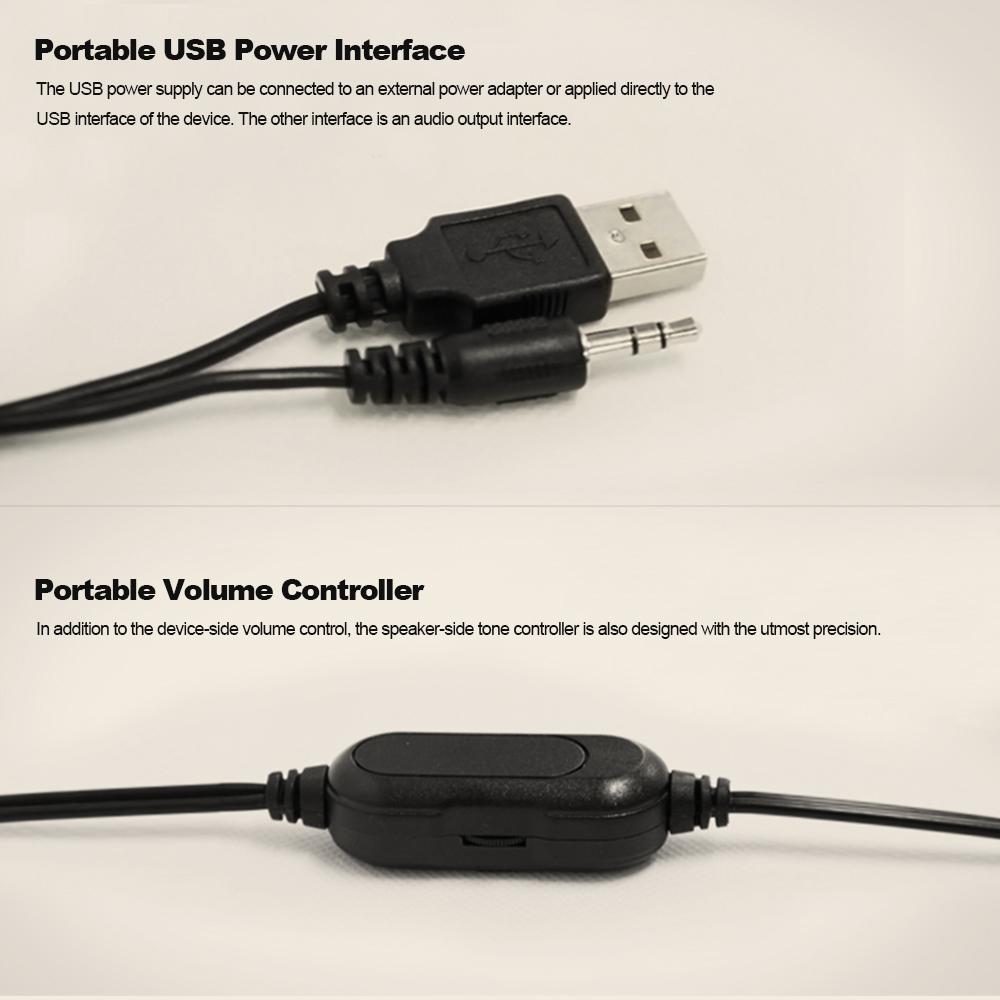 Features: *Great compatibility. Compatible with most smart devices with 3.5mm interface. *Stereo speaker, provides clear and perfect sound effect. *There are knobs for adjusting the volume, you can adjust them as you like. *Portable design