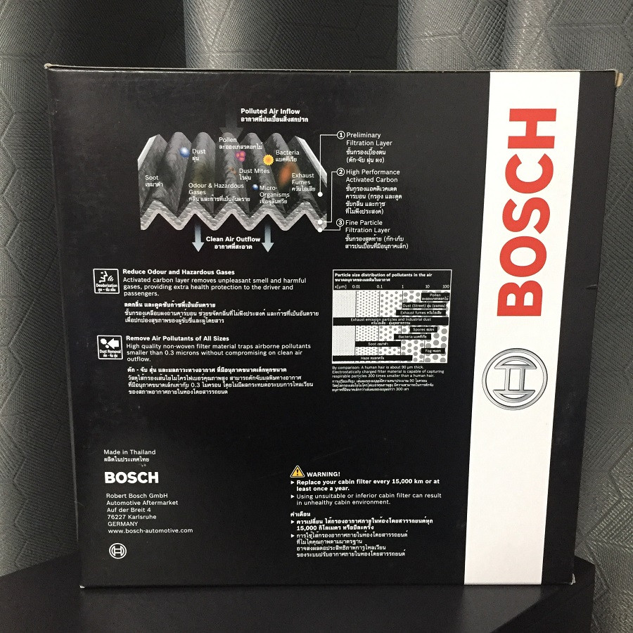 • Ưu điểm vượt trội của bộ lọc không khí Bosch: - Cấu tạo đa tầng, gồm 3 lớp sợi với kích thước sợi khác nhau,có thể hoạt động hiệu quả ở nhiệt độ từ