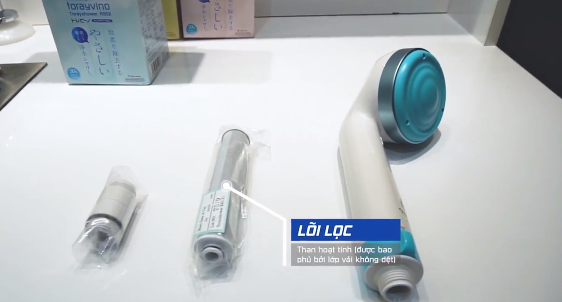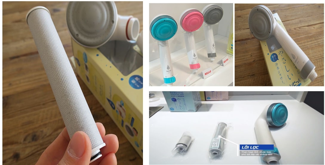 - Trong nước máy chứa dư lượng Chloride làm suy yếu cấu trúc của da và mái tóc, về lâu dài sẽ khiến tóc dễ gãy rụng, làn da nhạy cảm hơn. Vậy nên, lõi lọc Torayvino RSC-51 chứa các hạt than hoạt tính mang khả năng lọc bỏ dư lượng Chloride một cách hiệu quả, đã nhận được chứng nhận về nước sạch tại Nhật Bản.