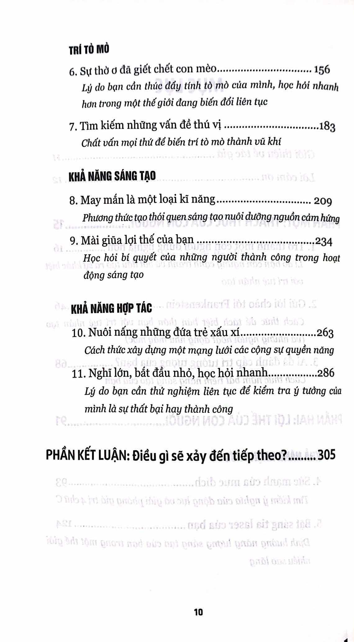 Dựa trên những nghiên cứu về tâm lý học và khoa học thần kinh mới nhất, các triết lý độc đáo của những doanh nhân thành công, và các biện pháp của những doanh nghiệp có tư duy tiến bộ, tác giả đã khám phá ra những kỹ năng cần thiết để con người tồn tại và vươn lên trong cuộc