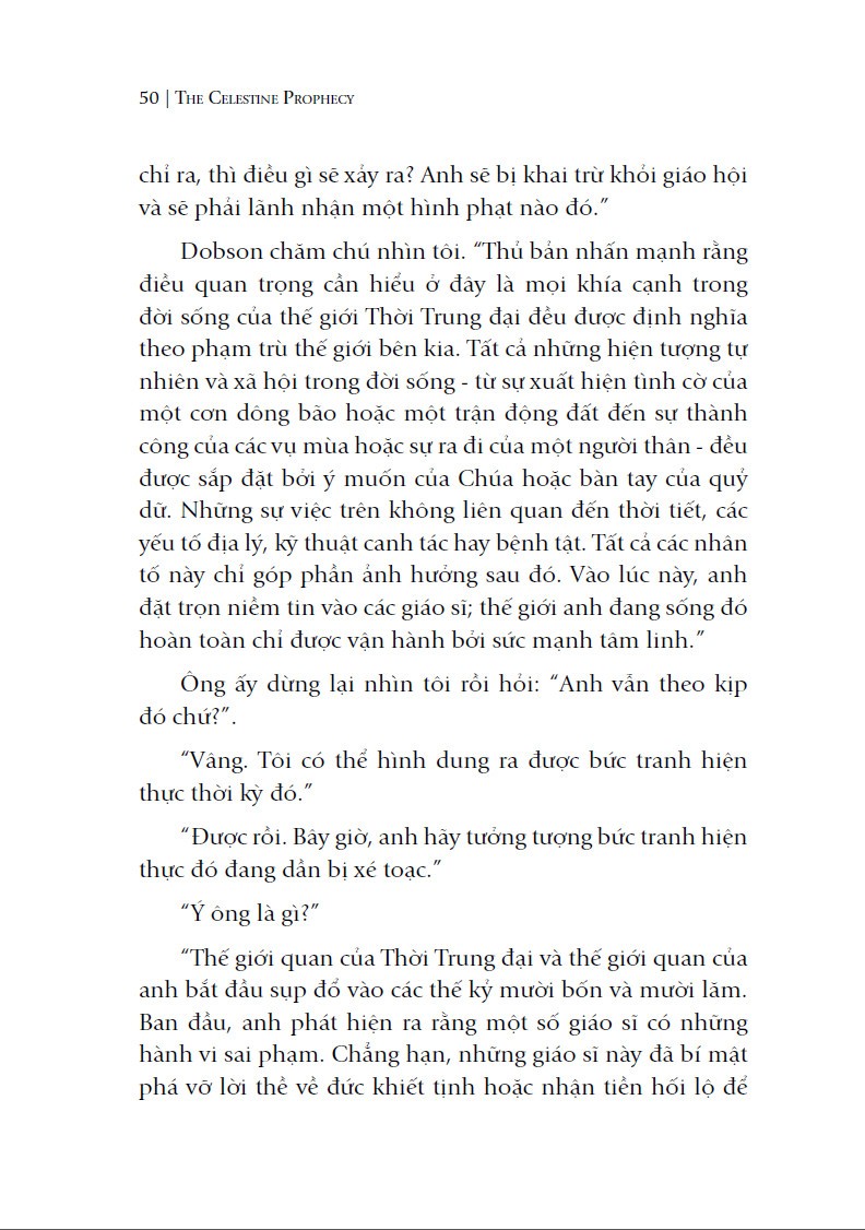 Không hàn lâm, khó hiểu như những quyển sách cùng chủ đề, bằng ngôn ngữ bình dị, “Lời tiên tri Celestine” đã truyền tải thông điệp về mặt tâm linh một cách mới mẻ dưới dạng tiểu thuyết, lôi cuốn người đọc từ đầu đến cuối.