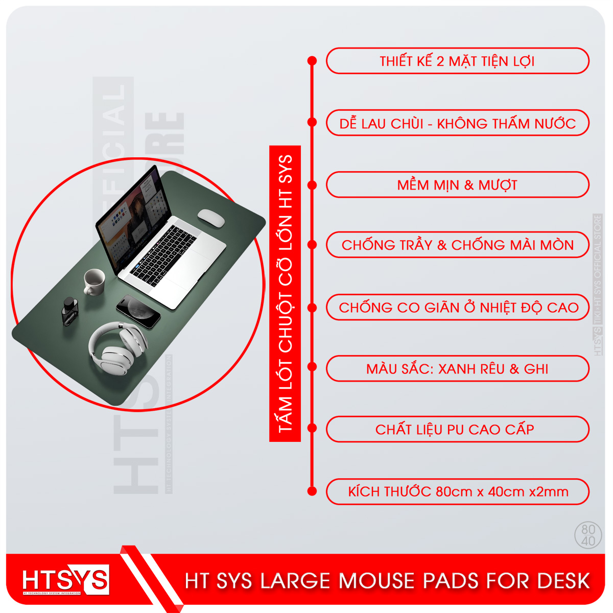 Lót Chuột HT SYS MXL800 EXTENDED 80x40 - Pad Chuột HT SYS Chất Liệu Da PU Cao Cấp - Hàng Chính Hãng