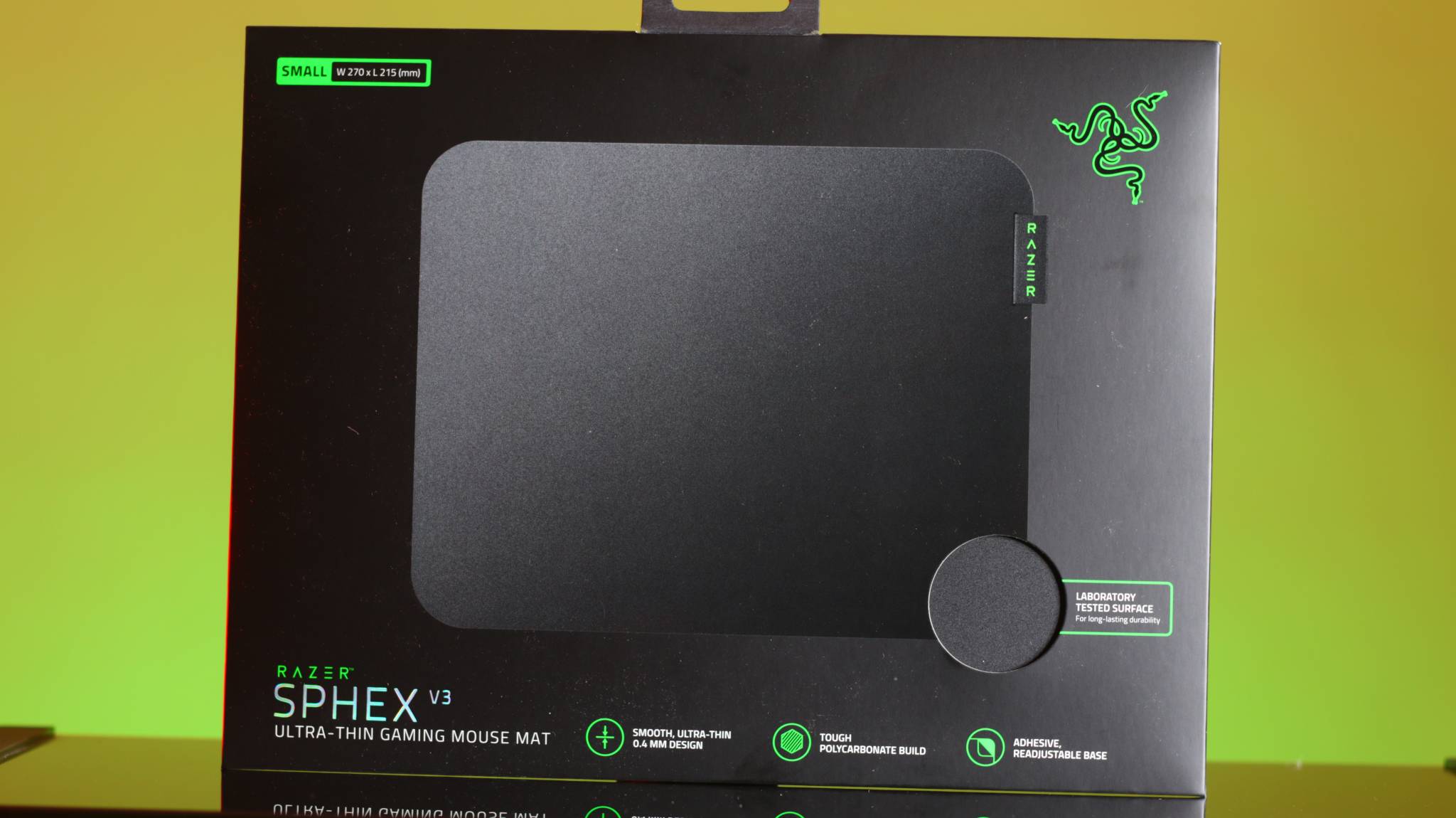 Hỗ trợ nhanh: 0965-128-124 Lót chuột Razer Sphex V3 Ultra Thin Tính Năng Nổi Bật Cứng và mỏng Giành chiến thắng với Razer Sphex V3 — phiên bản mới nhất của tấm lót chuột gaming cứng và mỏng nhất của Razer, hiện mỏng hơn 20% và có kích thước lớn hơn. Được làm mới với kiểu dáng đẹp, màu đen, nó cũng được cải tiến với bề mặt mịn hơn được cố định bằng đế kết dính để kiểm soát ổn định. Mỏng hơn 20% và lớn hơn 50% Bề mặt cứng, mịn hơn của nó cung cấp khả năng theo dõi linh hoạt, chính xác, được tối ưu hóa cho các cảm biến quang học. Có sẵn trong các kích thước small và large. Razer Sphex V3 mỏng 0,4mm, mỏng hơn 20% so với người tiền nhiệm của nó, Razer Sphex V2 đồng thời làm mới với kiểu dáng đẹp, màu đen thẩm mỹ và bề mặt bóng bẩy, Sphex V3 lớn hơn 50% so với Sphex V2 tiêu chuẩn. Chất liệu bền bỉ Được thử nghiệm trong phòng thí nghiệm để có độ bền va đập và xé đáng kinh ngạc, tấm lót chuột chơi game Razer Sphex V3 được trang bị tốt để xử lý nhiều giờ chơi game cường độ cao và liên tục. Phần đế kết dính giúp nó bám chặt vào bàn làm việc của bạn nhưng cũng đủ dễ dàng tach ra mà không để lại bất kỳ chất dính nào trên bề mặt bàn.