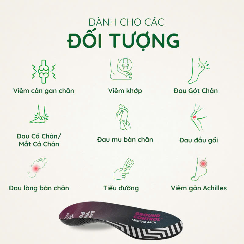 Người vận động nhiều muốn phòng tránh hoặc giảm một số vấn đề đau thường gặp ở bàn chân như: Viêm cân gan chân, Đau gót chân, Gai gót, Hỗ trợ bàn chân bẹt/ Vòm cao, U dây thần kinh Morton, Ngón chân hình búa, Đau bắp chân, gân Achilles hoặc đau cẳng chân, gối, lư
