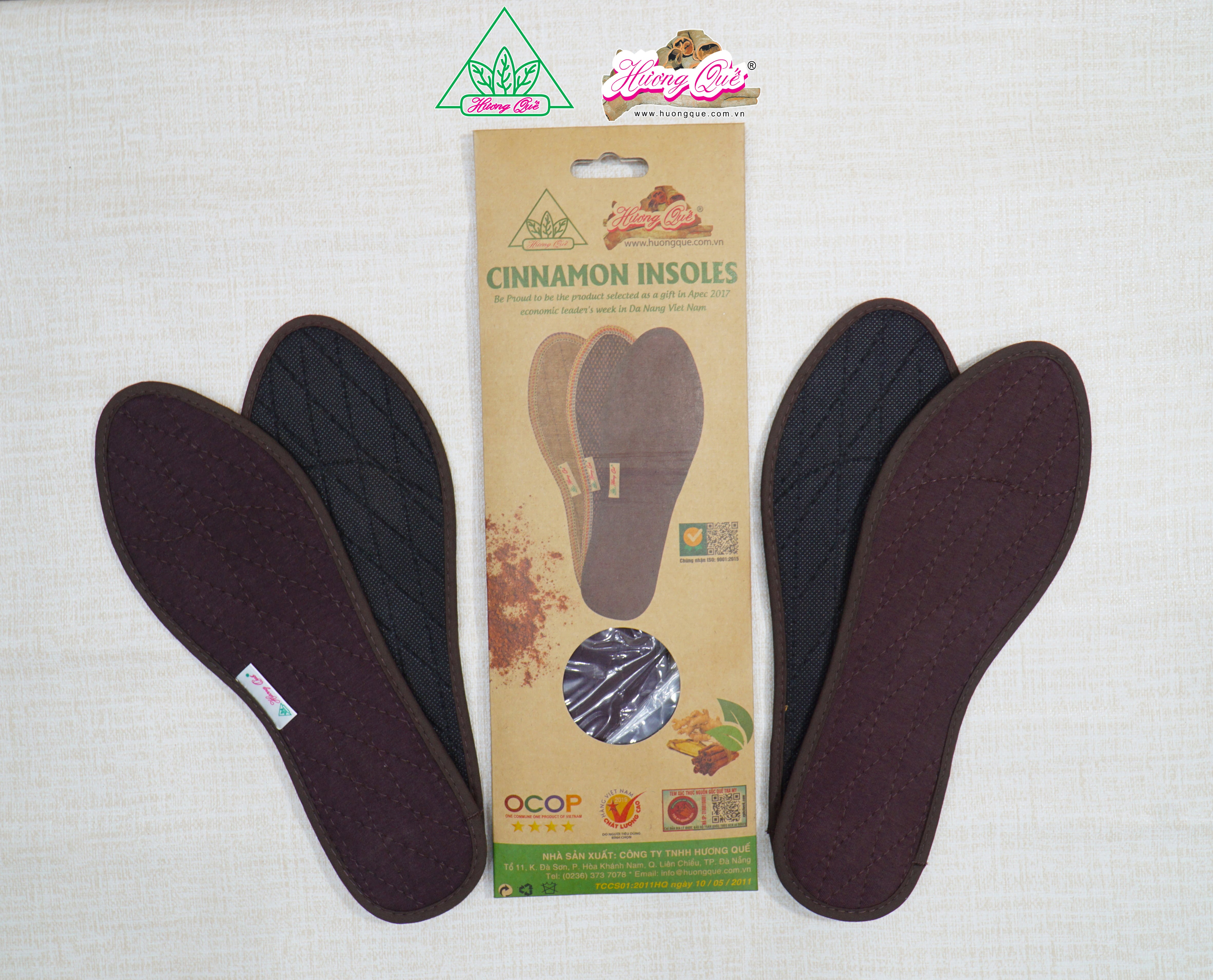 - Lót giày vải Hương Quế có thành phần từ cây Quế Trà My - Quảng Nam (là một trong bốn thảo dược quý Sâm - Nhung - Quế - Phụ) có chất lượng