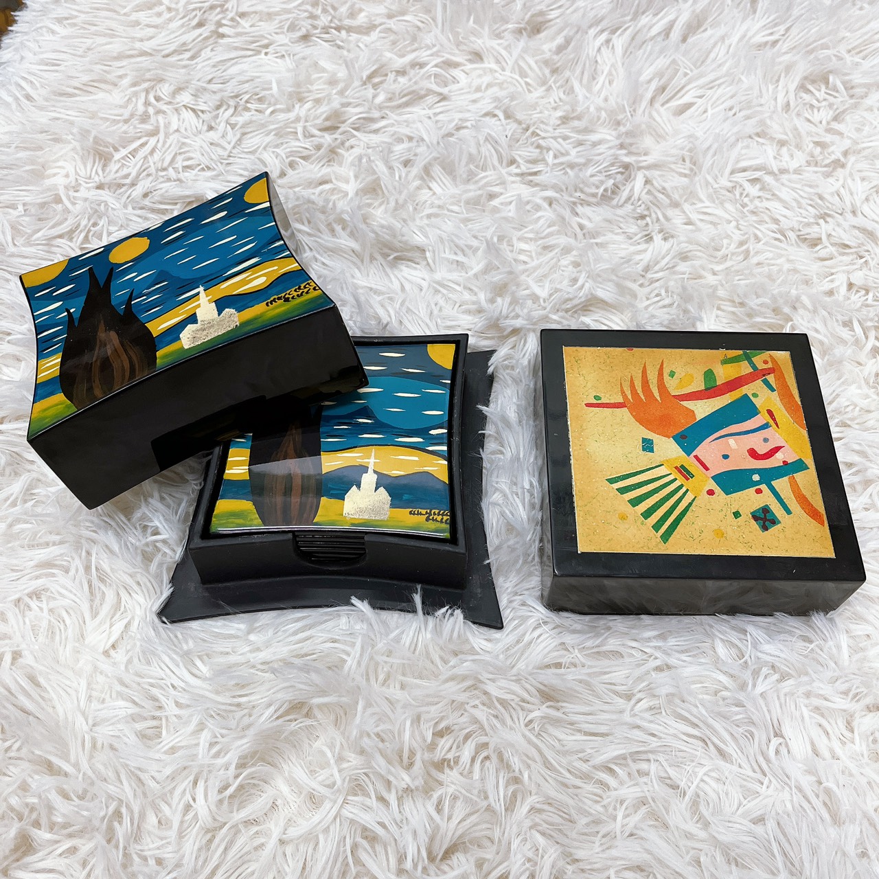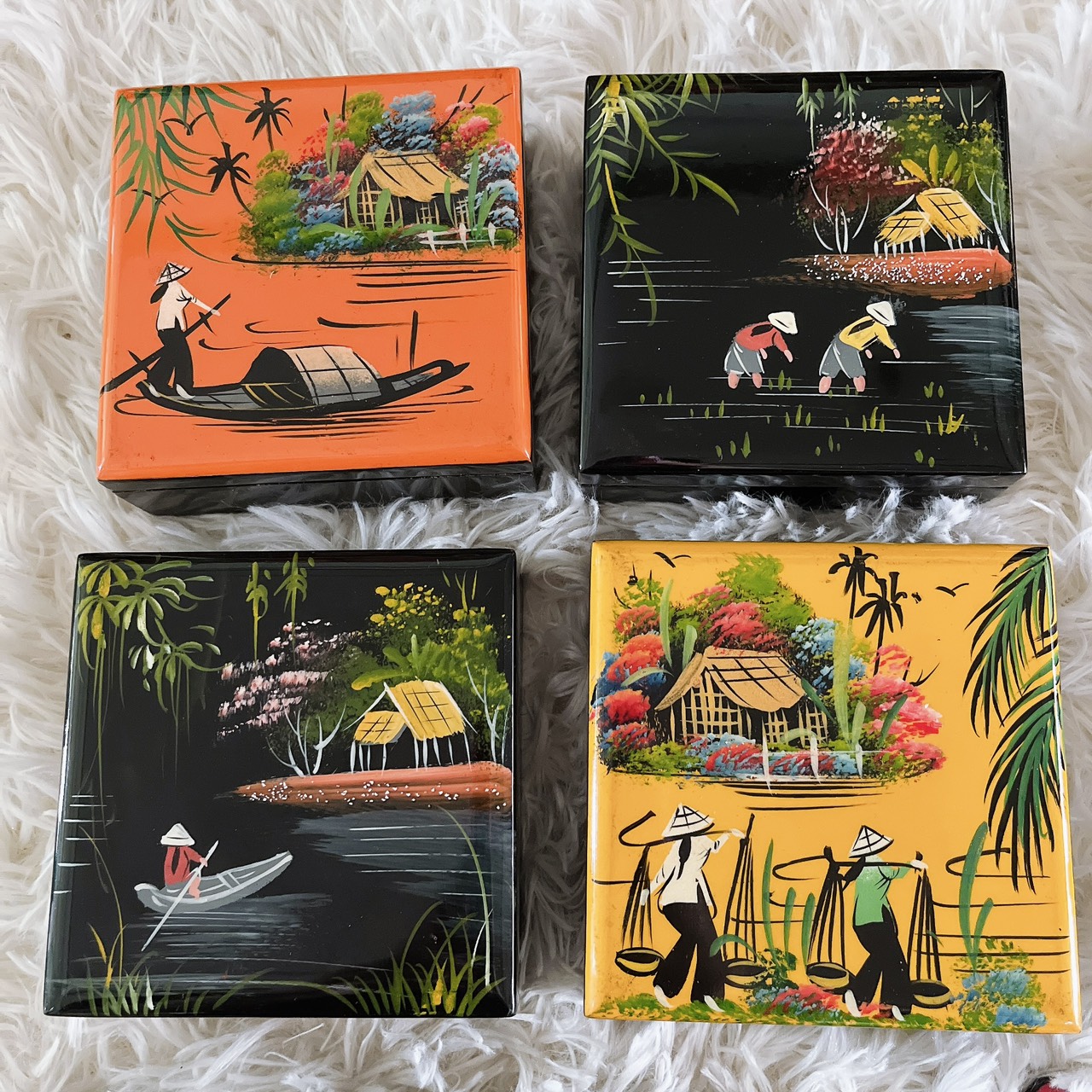 Hộp lót ly sơn mài cao cấp, là hàng thủ công mỹ nghệ độc đáo bởi từ khâu nguyên liệu được người nghệ sĩ làm rất tỉ mỉ và công phu, cho đến khi hoàn thành sản phẩm