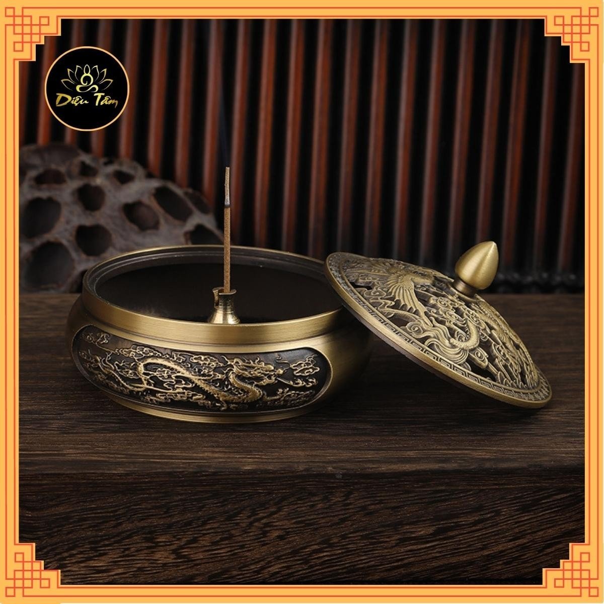 ✨Lư đồng lư xông trầm hương trầm nụ cao cấp thiết kế tinh xảo tặng kèm trụ và lót chống cháy shop Diệu Tâm