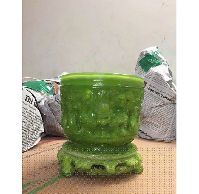 Kích thước: Cao 15cm; Đường kính 14cm Khối lượng: 3,5 kg Chất liệu: Đá ngọc hoàng long