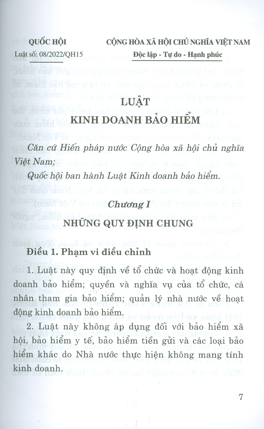 Luật Kinh Doanh Bảo Hiểm số 08/2022/Qh15 đã được Quốc Hội thông qua ngày 16 tháng 6 năm 2022 ( Luật này có hiệu lực từ ngày 01 -01 -2023)