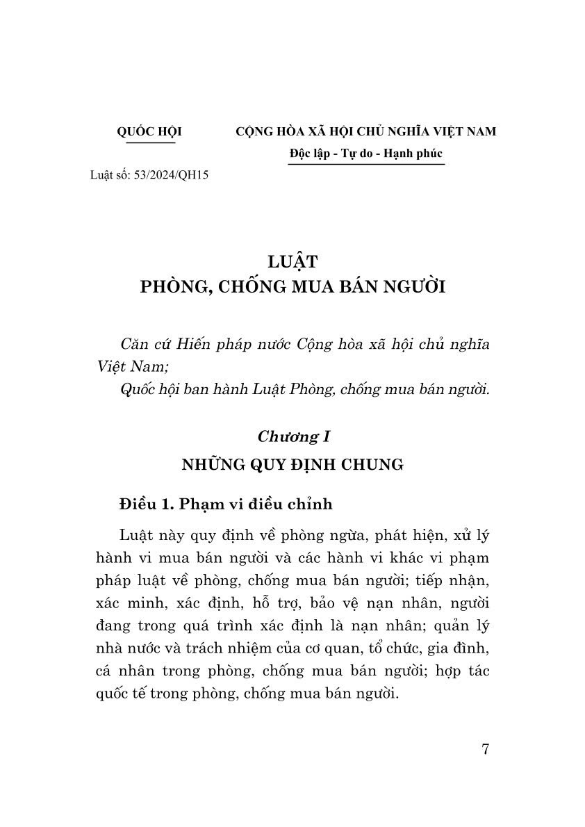 Cuốn sách gồm toàn văn Luật Phòng, chống mua bán người năm 2024