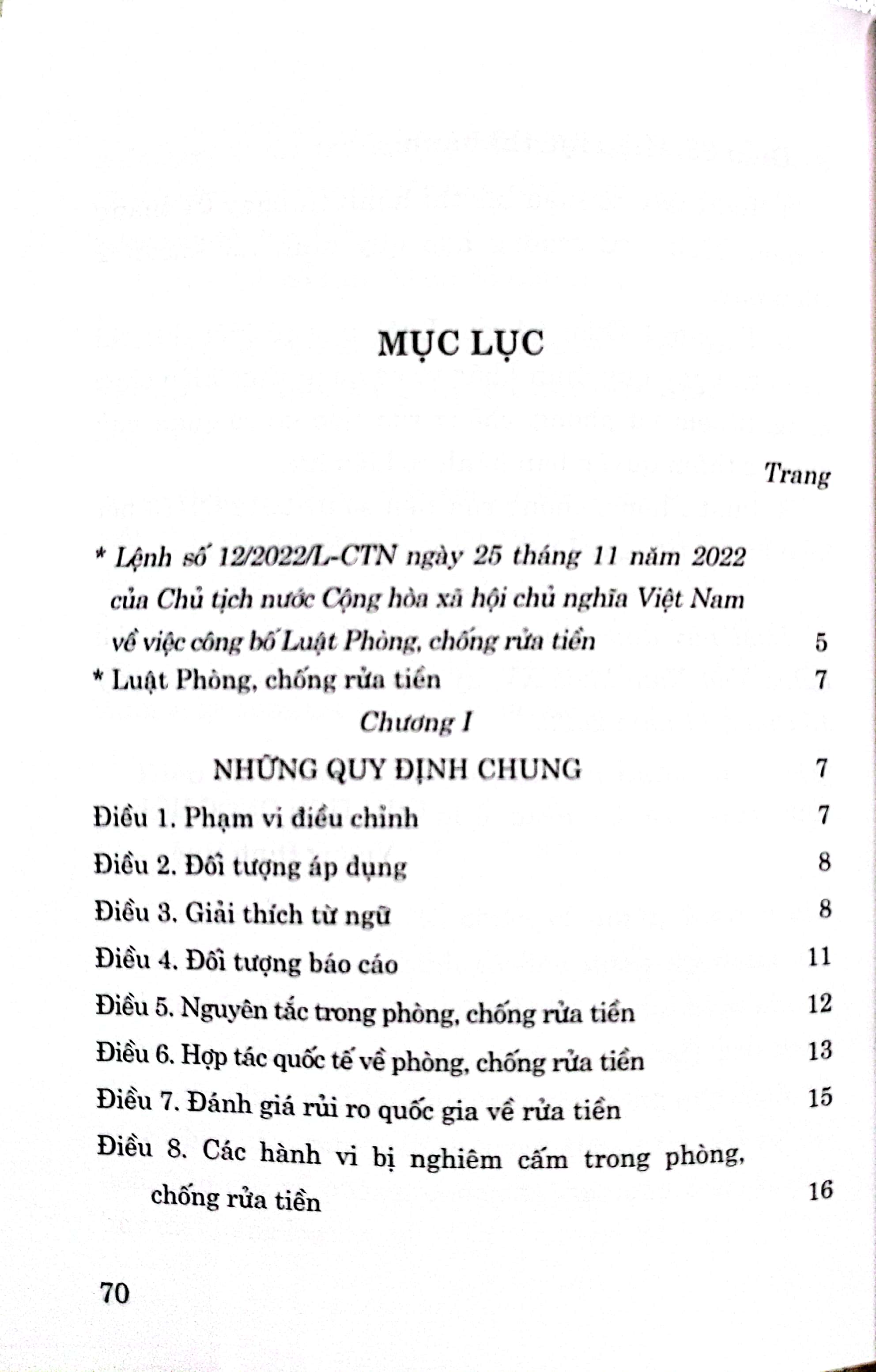 Luật Phòng Chống Rửa Tiền 2022 - Chương 1. NHỮNG QUY ĐỊNH CHUNG (Điều 1-8)