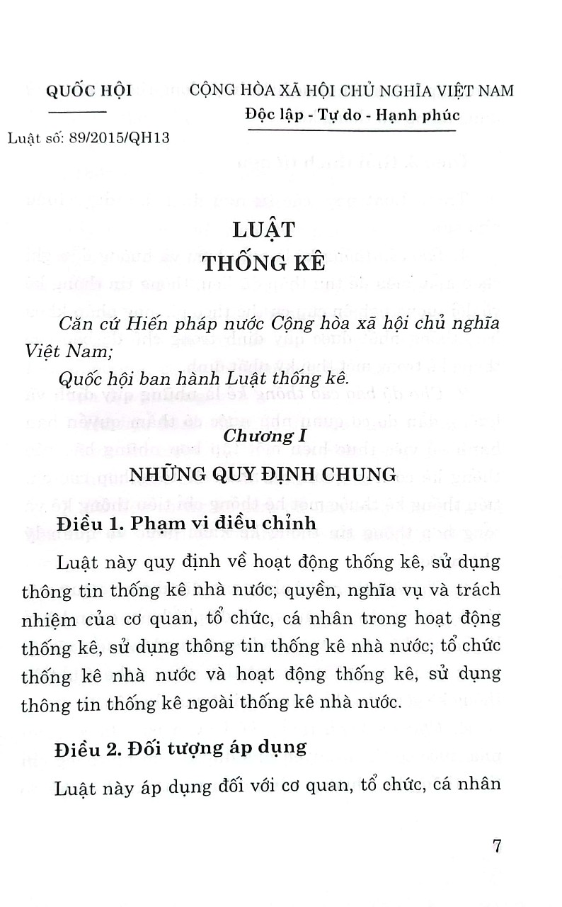 Luật thống kê năm 2015 có hiệu lực thi hành từ ngày 01-7-2016, thay thế Luật thống kê năm 2003 đã tạo cơ sở pháp lý vững chắc cho hoạt động thống kê, sử dụng thông tin thống kê, khắc phục bất cập của Luật thống kê năm 2003 và tiếp thu các nguyên tắc mới của thống kê Liên hợp quốc trong tiến trình hội nhập.