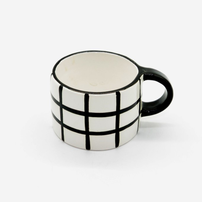 Ly Cà Phê Morning 04 - Họa Tiết Caro của thương hiệu Lina Pottery by Minh Tien Ceramic được làm từ chất liệu sứ cao cấp, ưu điểm có bề mặt mịn màng và chịu được va đập nhẹ.