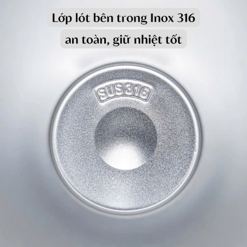 • Thân ly: Inox 316 cao cấp, chống gỉ, bền bỉ theo thời gian và giúp giữ nhiệt hiệu quả.